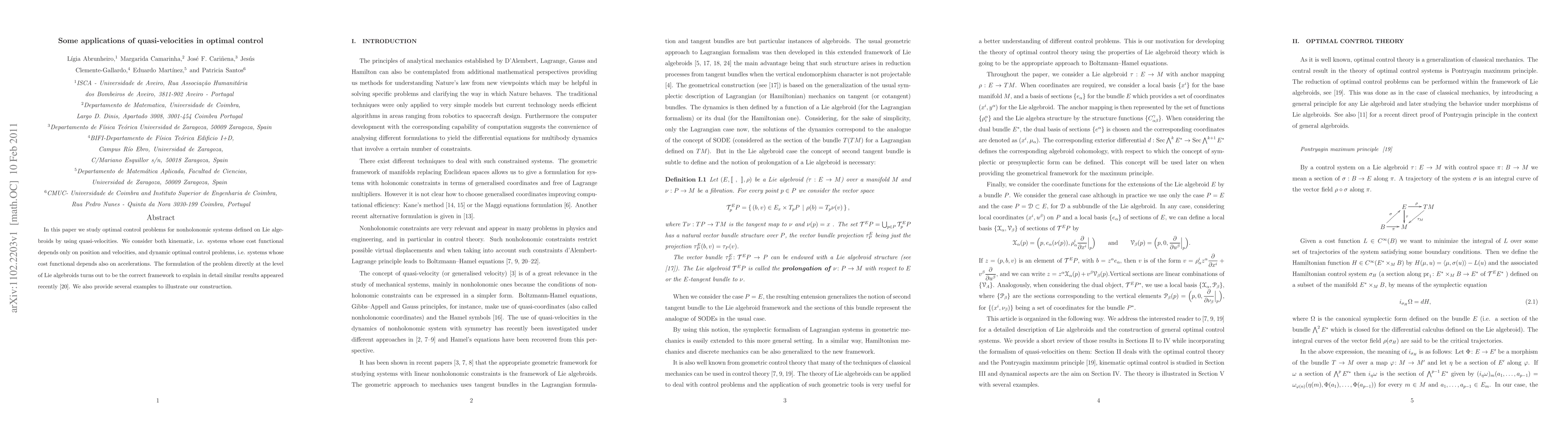 This paper applies quasi-velocities to solve optimal control problems for nonholonomic systems, including both kinematic and dynamic cases, using a framework based on Lie algebroids.