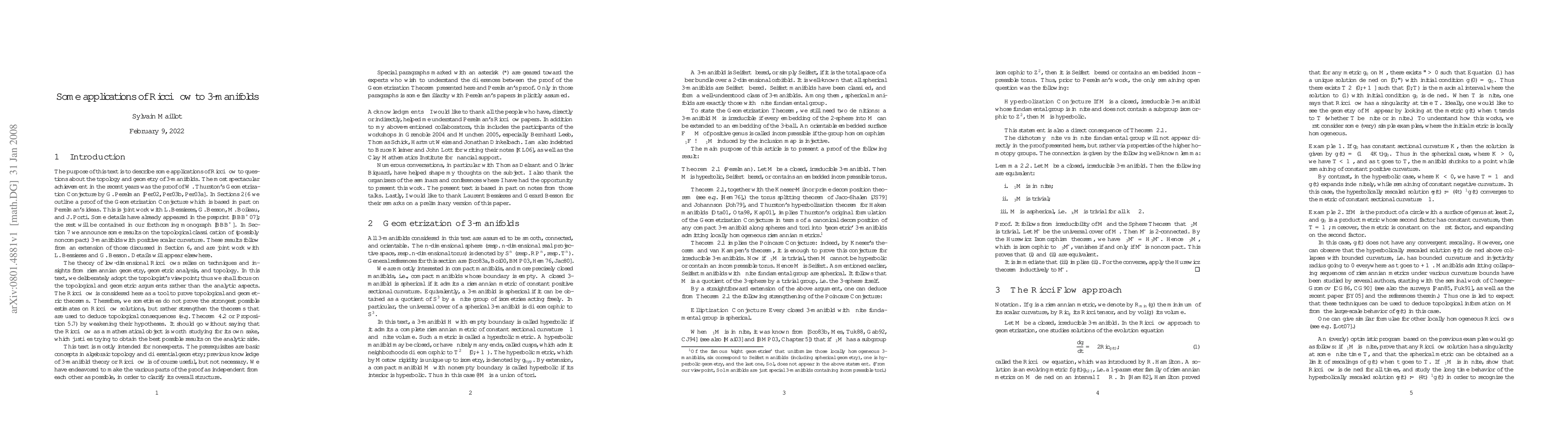 This paper, in collaboration with several authors, explores applications of Ricci flow to 3-manifolds, focusing on their geometry and topology. It serves as an introduction to Ricci flow with surgery and the geometric approach to collapsing theorems, with a final section addressing Ricci flow on open 3-manifolds and related obstructions to positive scalar curvature.