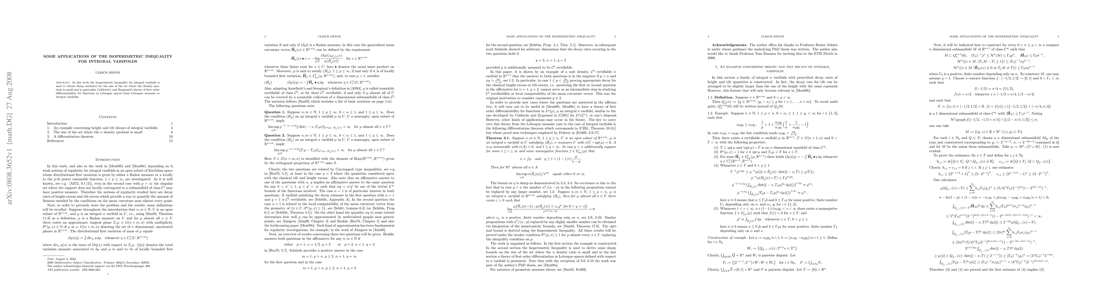 This paper applies the Isoperimetric Inequality for integral varifolds to derive precise estimates for sets with low density quotients and extends Calder\'on and Zygmund's first-order differentiability theory from Lebesgue measure to integral varifolds.