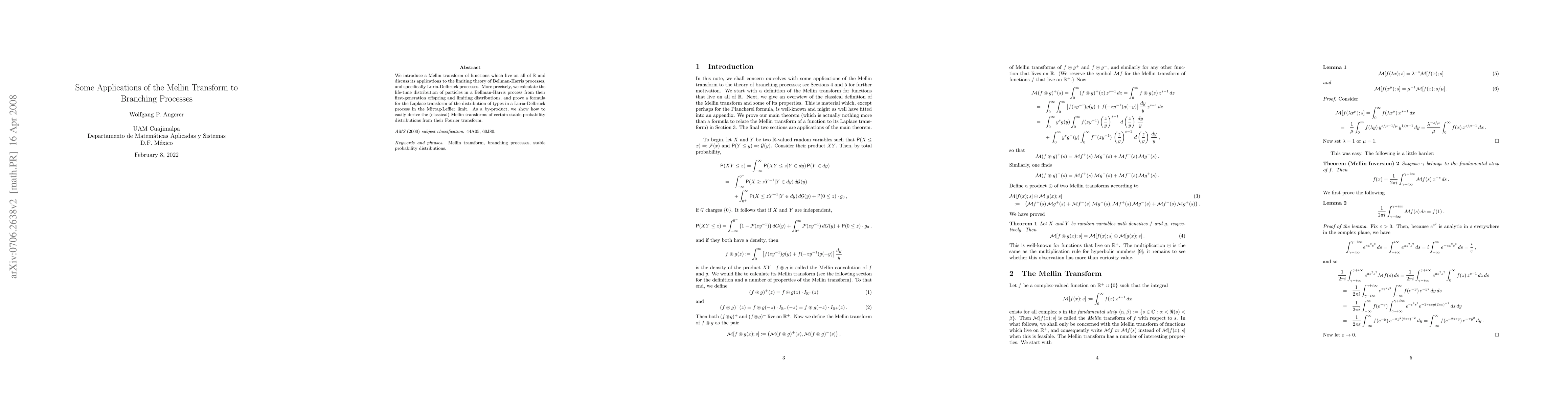 We introduce a Mellin transform of functions which live on all of $\bR$ and discuss its applications to the limiting theory of Bellman-Harris processes, and specifically Luria-Delbr\"uck processes. More precisely, we calculate the life-time distribution of particles in a Bellman-Harris process from their first-generation offspring and limiting distributions, and prove a formula for the Laplace transform of the distribution of types in a Luria-Delbr\"uck process in the Mittag-Leffler limit. As a by-product, we show how to easily derive the (classical) Mellin transforms of certain stable probability distributions from their Fourier transform.