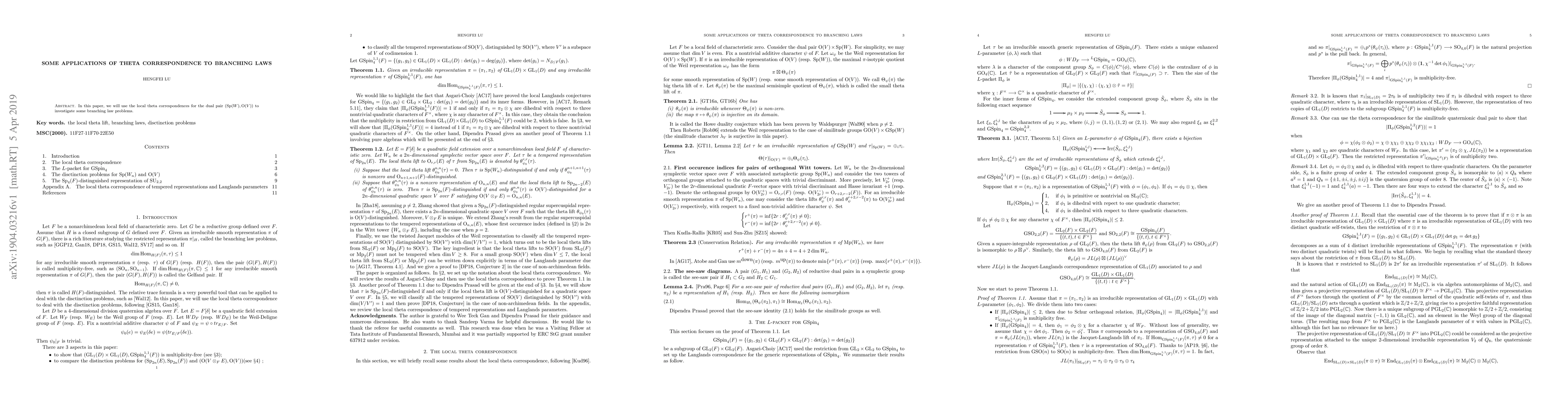 In this paper, we will use the local theta correspondences for the dual pair (Sp(W),O(V)) to investigate some branching law problems.