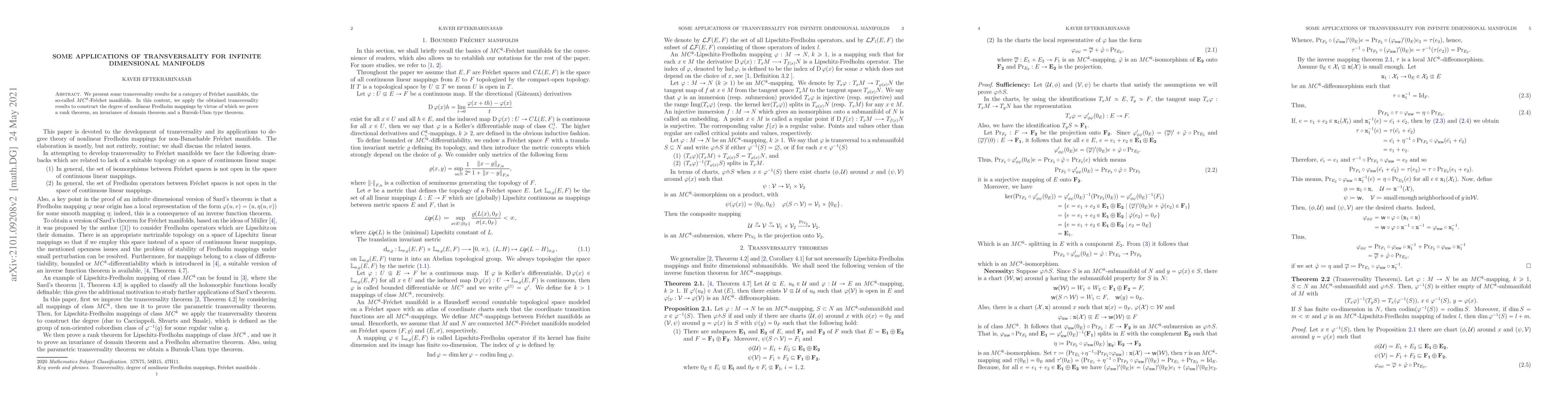 This paper establishes transversality results for $MC^k$-Fréchet manifolds and applies these to construct the degree of nonlinear Fredholm mappings, leading to proofs of a rank theorem, an invariance of domain theorem, and a Bursuk-Ulam type theorem.