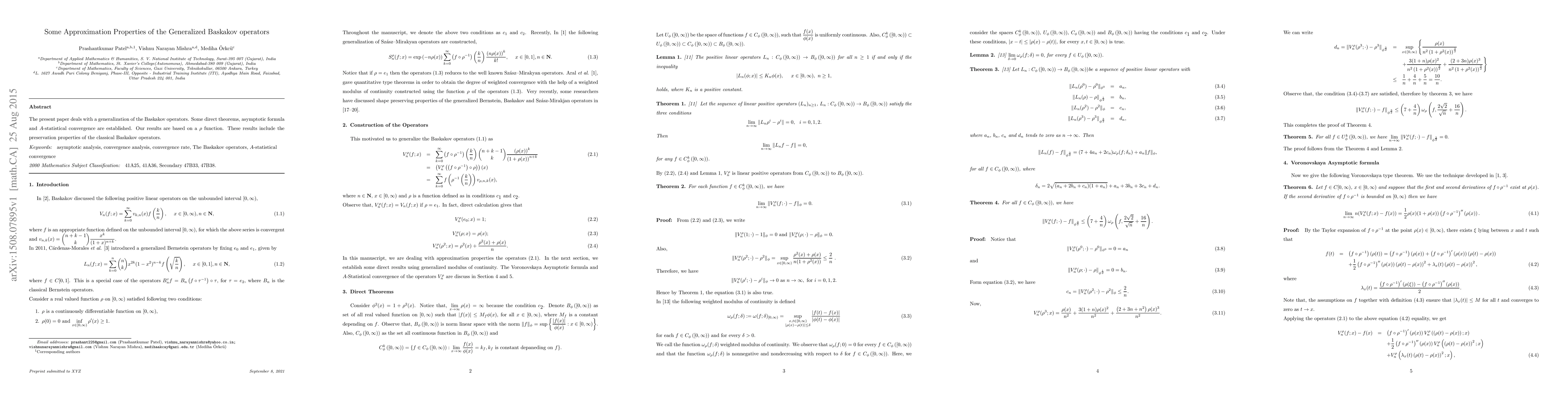 This paper generalizes Baskakov operators and establishes direct theorems, an asymptotic formula, and $A$-statistical convergence based on a $\rho$ function, preserving the properties of classical Baskakov operators.