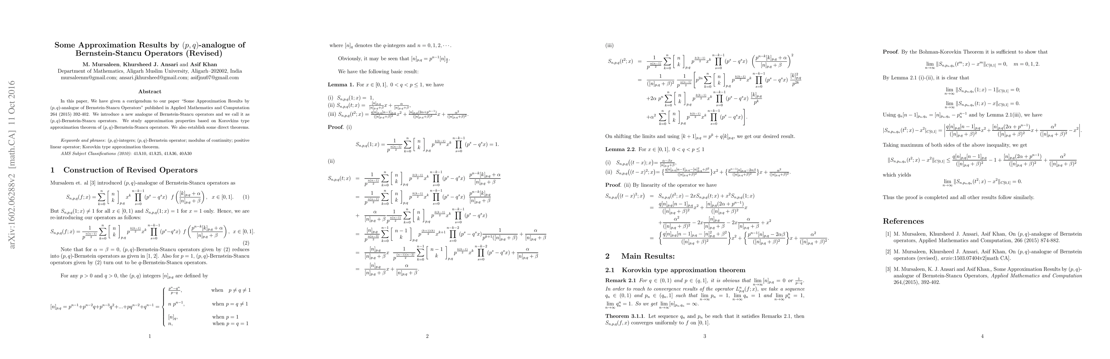 This paper provides a corrigendum to a previous study on $(p,q)$-analogue of Bernstein-Stancu operators, introducing a new $(p,q)$-Bernstein-Stancu operator. It examines approximation properties using Korovkin's theorem and establishes direct theorems.