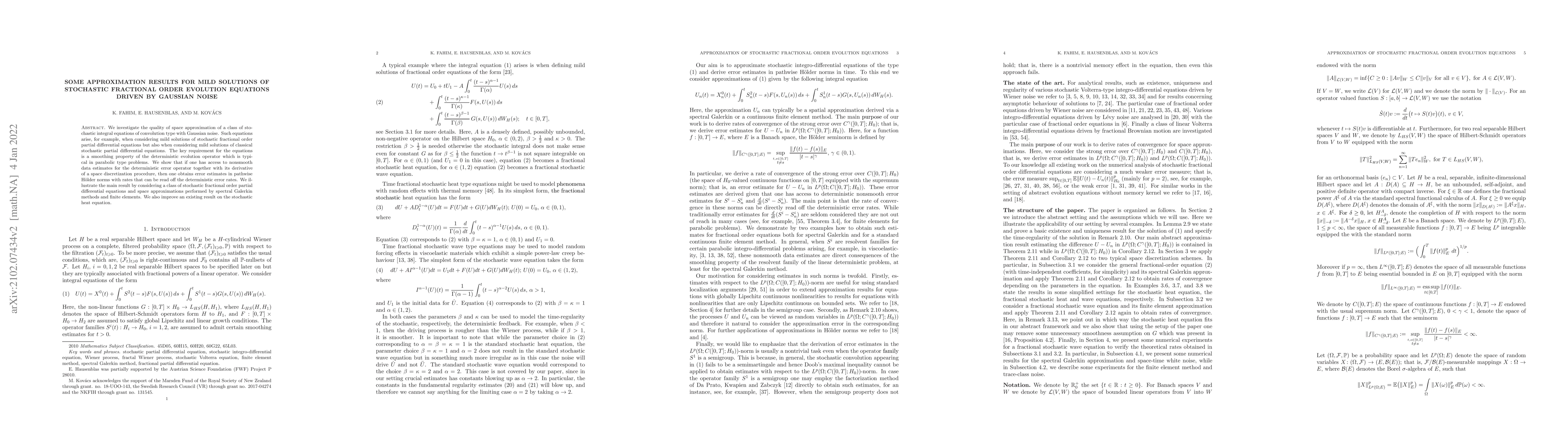 This paper explores the approximation quality of stochastic integral equations driven by Gaussian noise, focusing on mild solutions to stochastic fractional order partial differential equations. It demonstrates that error estimates in pathwise H\"older norms can be derived from deterministic error rates, illustrated through spectral Galerkin methods and finite elements, and improves existing results for the stochastic heat equation.