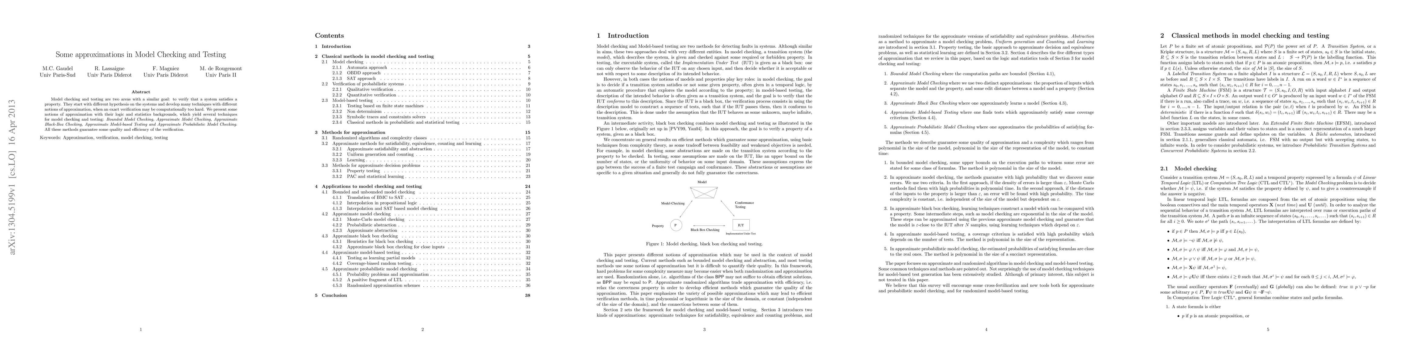 This paper explores various approximation techniques in model checking and testing to address the computational challenges of exact verification. It discusses methods like Bounded Model Checking and Approximate Model-based Testing, emphasizing their logic and statistical foundations to ensure quality and efficiency in system verification.
