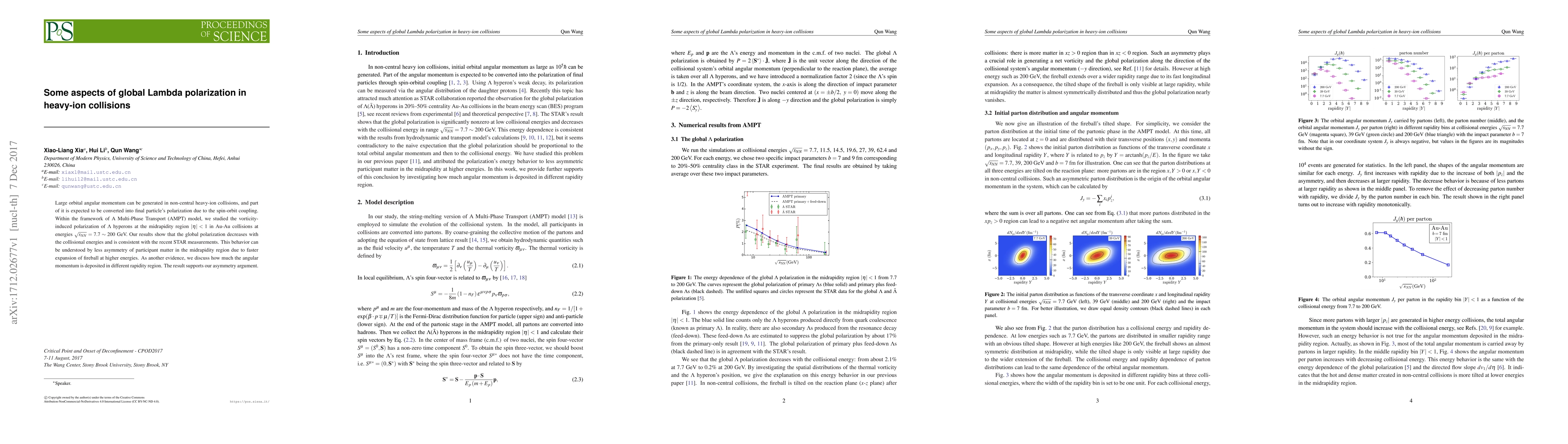 This paper investigates the polarization of $\Lambda$ hyperons in heavy-ion collisions using the AMPT model, finding that global polarization decreases with increasing collision energy. The observed trend aligns with STAR measurements and is attributed to reduced participant matter asymmetry due to faster fireball expansion at higher energies.
