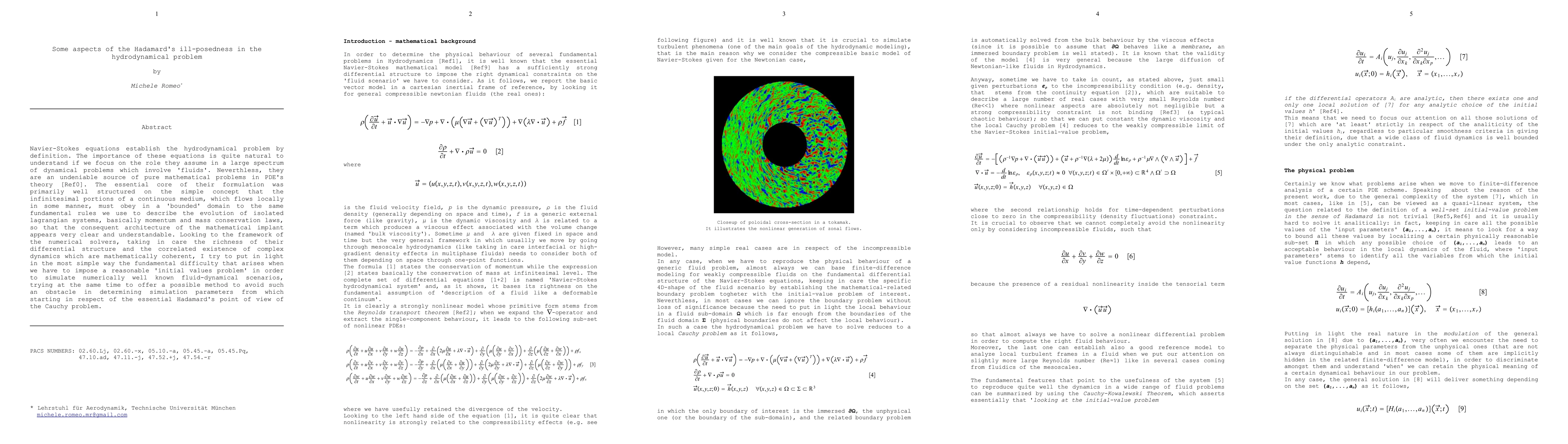 Navier-Stokes equations establish the hydrodynamical problem by definition. The importance of these equations is quite natural to understand if we focus on the role they assume in a large spectrum of dynamical problems which involve 'fluids'. Neverthless, they are an undeniable source of pure mathematical problems in PDE's theory. The essential core of their formulation was primarily well structured on the simple concept that the infinitesimal portions of a continuous medium, which flows locally in some manner, must obey in a 'bounded' domain to the same fundamental rules we use to describe the evolution of isolated lagrangian systems, basically momentum and mass conservation laws, so that the consequent architecture of the mathematical implant appears very clear and understandable. Looking to the framework of the numerical solvers, taking in care the richness of their differential structure and the correlated existence of complex dynamics which are mathematically coherent, I try to put in light in the most simple way the fundamental difficulty that arises when we have to impose a reasonable 'initial values problem' in order to simulate numerically well known fluid-dynamical scenarios, trying at the same time to offer a possible method to avoid such an obstacle in determining simulation parameters from which starting in respect of the essential Hadamard's point of view of the Cauchy problem.