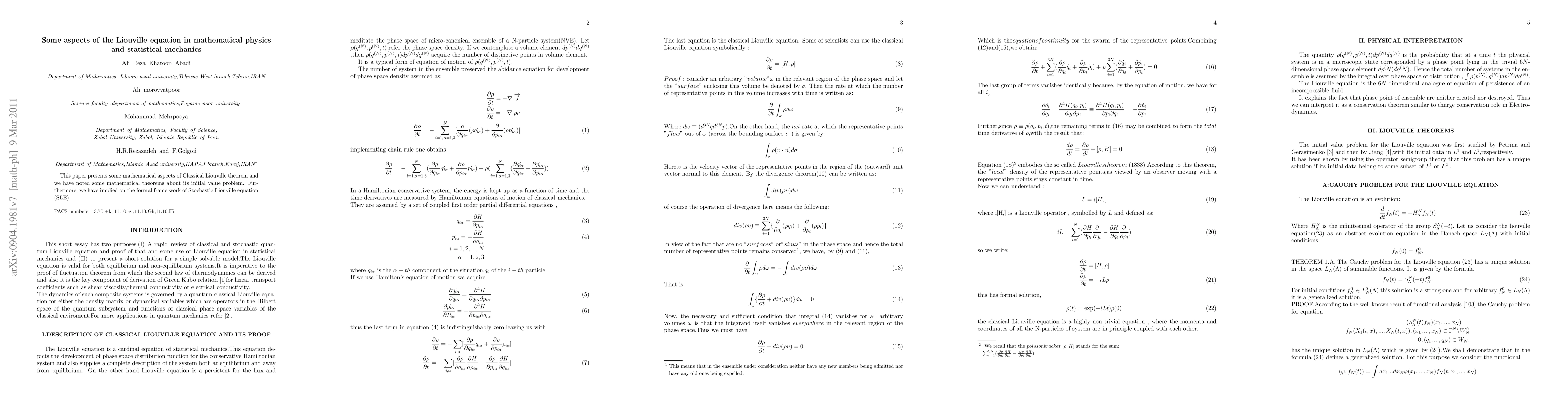 This paper explores mathematical aspects of the Liouville equation, including its initial value problem and implications for the Stochastic Liouville equation.