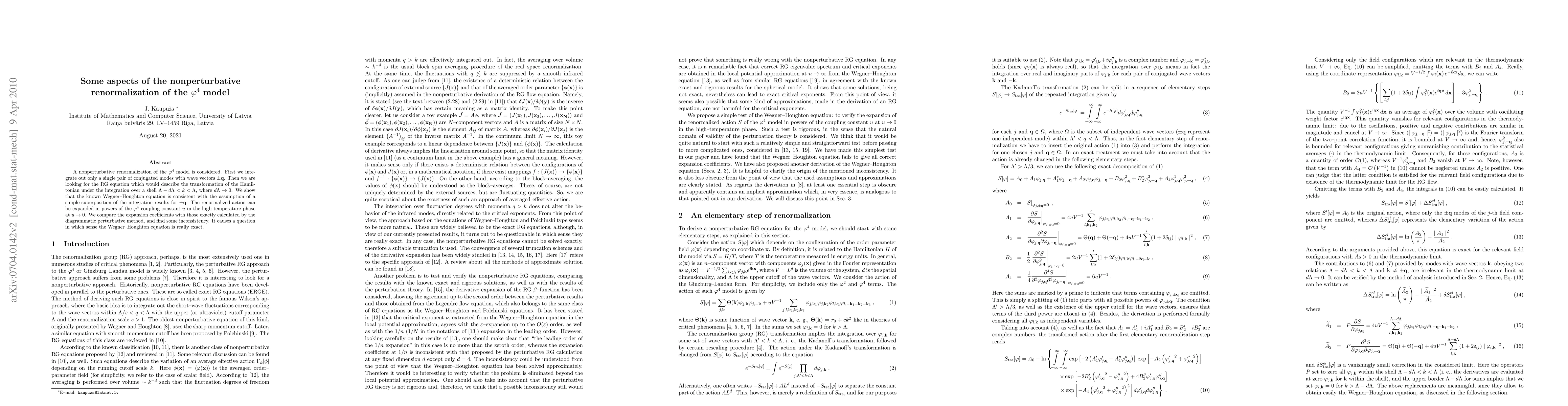 A nonperturbative renormalization of the phi^4 model is considered. First we integrate out only a single pair of conjugated modes with wave vectors +/- q. Then we are looking for the RG equation which would describe the transformation of the Hamiltonian under the integration over a shell Lambda - d Lambda < k < Lambda, where d Lambda -> 0. We show that the known Wegner--Houghton equation is consistent with the assumption of a simple superposition of the integration results for +/- q. The renormalized action can be expanded in powers of the phi^4 coupling constant u in the high temperature phase at u -> 0. We compare the expansion coefficients with those exactly calculated by the diagrammatic perturbative method, and find some inconsistency. It causes a question in which sense the Wegner-Houghton equation is really exact.