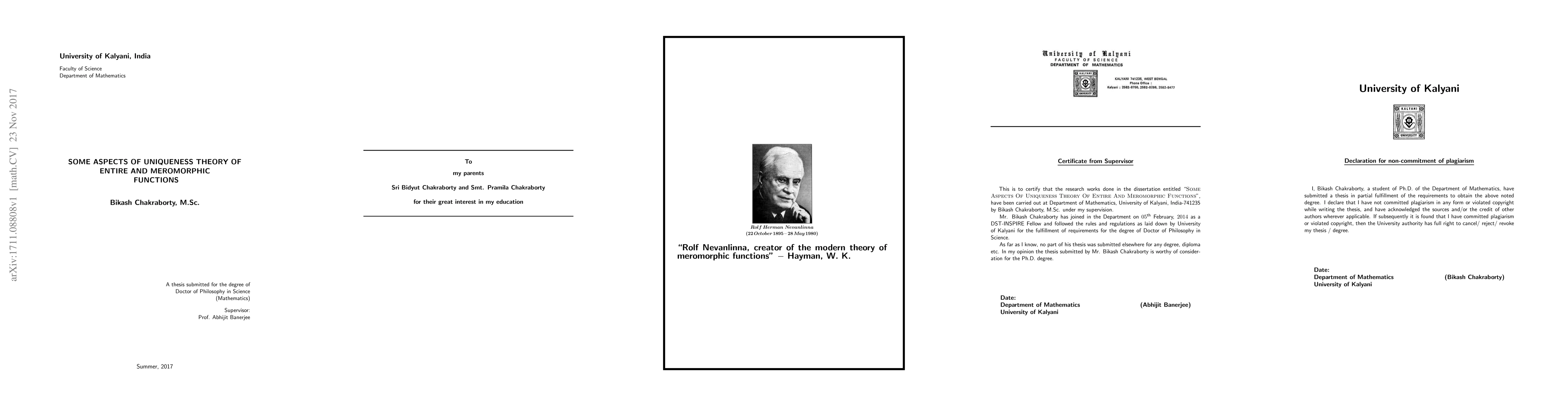 The subject of our thesis is the uniqueness theory of meromorphic functions and it is devoted to problems concerning Bruck conjecture, set sharing and related topics. The tool, we used in our discussions is classical Nevanlinna theory of meromorphic functions. In 1996, in order to find the relation between an entire function with its derivative, counterpart sharing one value CM, a famous conjecture was proposed by R. Bruck. Since then the conjecture and its analogous results have been investigated by many researchers and continuous efforts have been put on by them. In our thesis, we have obtained similar types of conclusions as that of Bruck for two differential polynomials which in turn improve several existing results under different sharing environment. A number of examples have been exhibited to justify the necessity or sharpness of some conditions, hypothesis used in the thesis. As a variation of value sharing, F. Gross first introduced the idea of set sharing, by proposing a problem, which has later became popular as Gross Problem. Inspired by the Gross' Problem, the set sharing problems were started which was later shifted towards the characterization of the polynomial backbone of different unique range sets. In our study, we introduced some new type of unique range sets and at the same time, we further explored the anatomy of these unique range sets generating polynomials as well as connected Bruck conjecture with Gross' Problem.