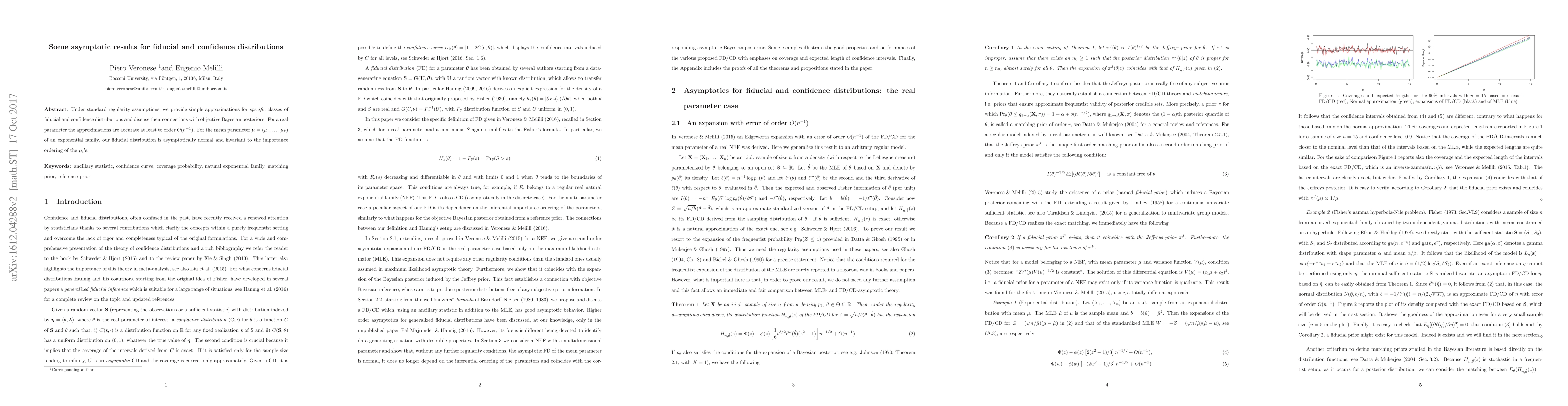 This research offers approximations for fiducial and confidence distributions under regularity conditions, accurate to order O(1/n). For multivariate exponential families, the fiducial distribution for mean parameter is asymptotically normal, independent of component importance order.