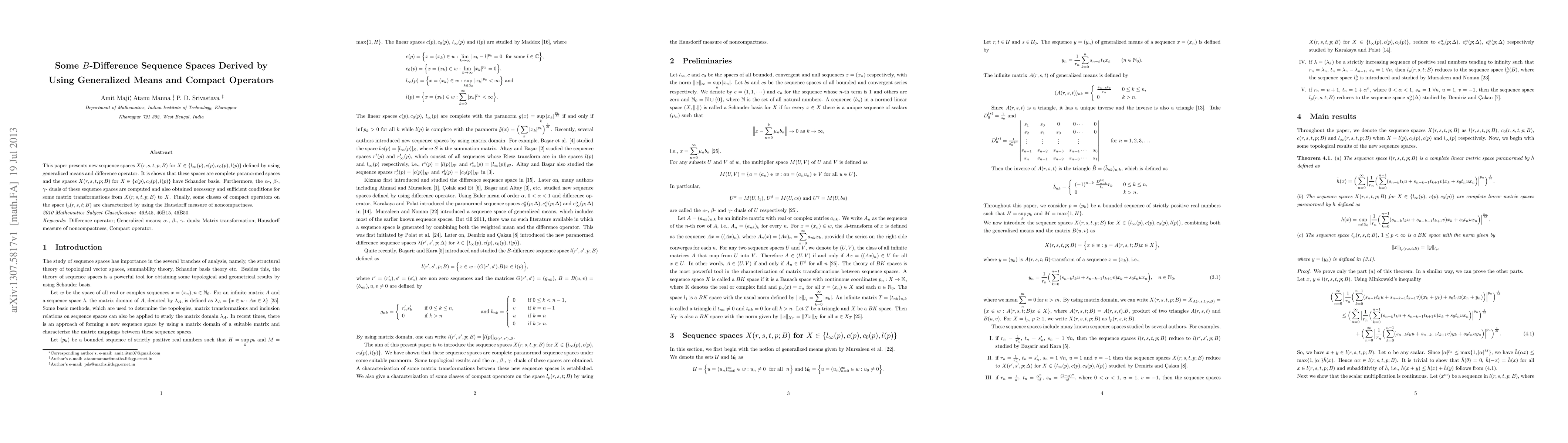 This paper introduces new sequence spaces $X(r, s, t, p ; B)$ derived via generalized means and difference operators, proving their completeness and Schauder basis properties. It also computes their duals and conditions for matrix transformations, and characterizes compact operators using the Hausdorff measure of noncompactness.
