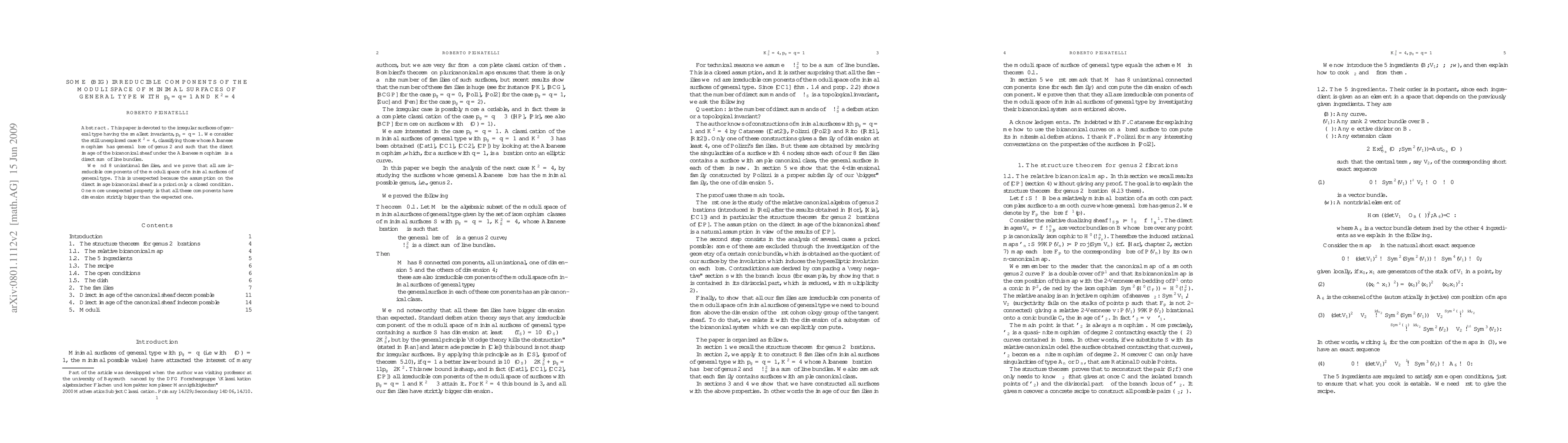 This paper classifies 8 unirational families of minimal surfaces of general type with $p_g=q=1$ and $K^2=4$, showing they form irreducible components of the moduli space, each with dimension greater than expected, and the bicanonical sheaf's direct image is a sum of line bundles.