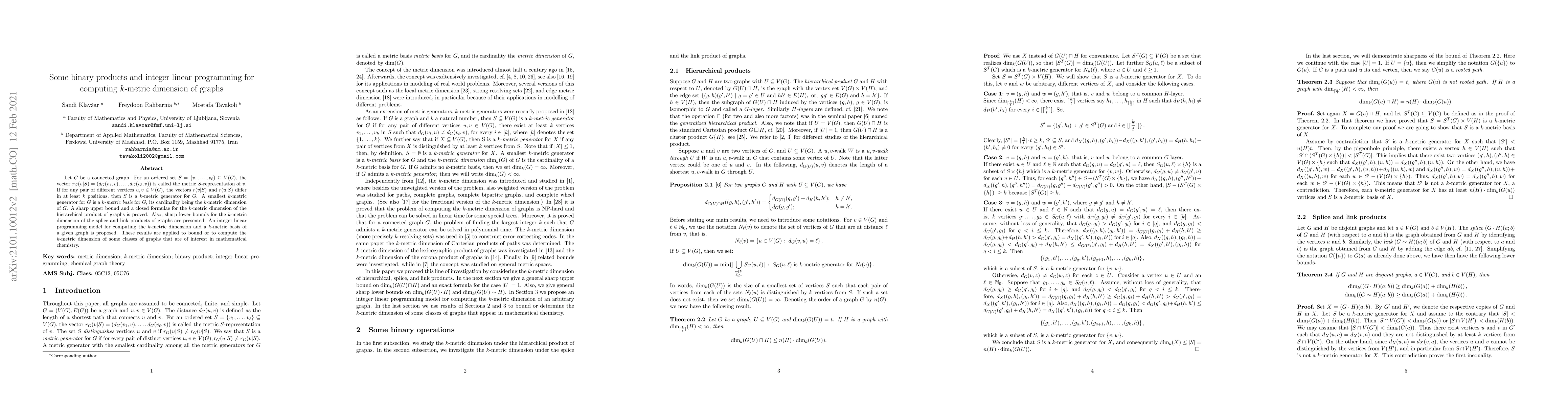 The paper proves a sharp upper bound for the k-metric dimension of hierarchical graphs and presents lower bounds for splice and link products. It also proposes an integer linear programming model to compute the k-metric dimension of graphs.