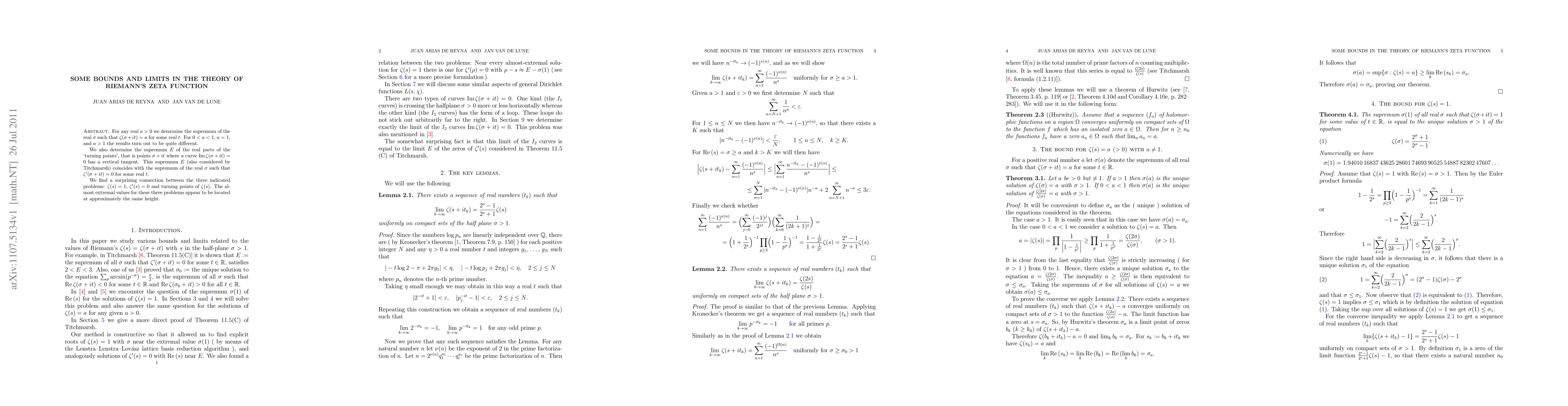 For any real a>0 we determine the supremum of the real \sigma\ such that \zeta(\sigma+it) = a for some real t. For 0 < a < 1, a = 1, and a > 1 the results turn out to be quite different.} We also determine the supremum E of the real parts of the `turning points', that is points \sigma+it where a curve Im \zeta(\sigma+it) = 0 has a vertical tangent. This supremum E (also considered by Titchmarsh) coincides with the supremum of the real \sigma\ such that \zeta'(\sigma+it) = 0 for some real t. We find a surprising connection between the three indicated problems: \zeta(s) = 1, \zeta'(s) = 0 and turning points of \zeta(s). The almost extremal values for these three problems appear to be located at approximately the same height.