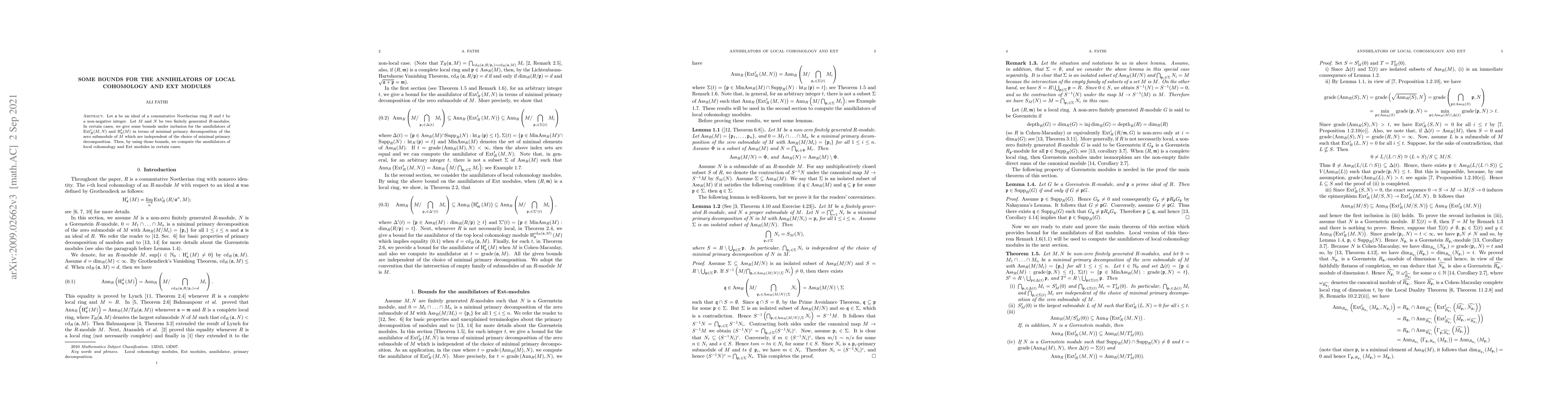 The paper provides bounds for the annihilators of $\operatorname{Ext}$ and local cohomology modules in terms of the minimal primary decomposition of $M$. It computes these annihilators in specific cases, independent of the choice of decomposition.