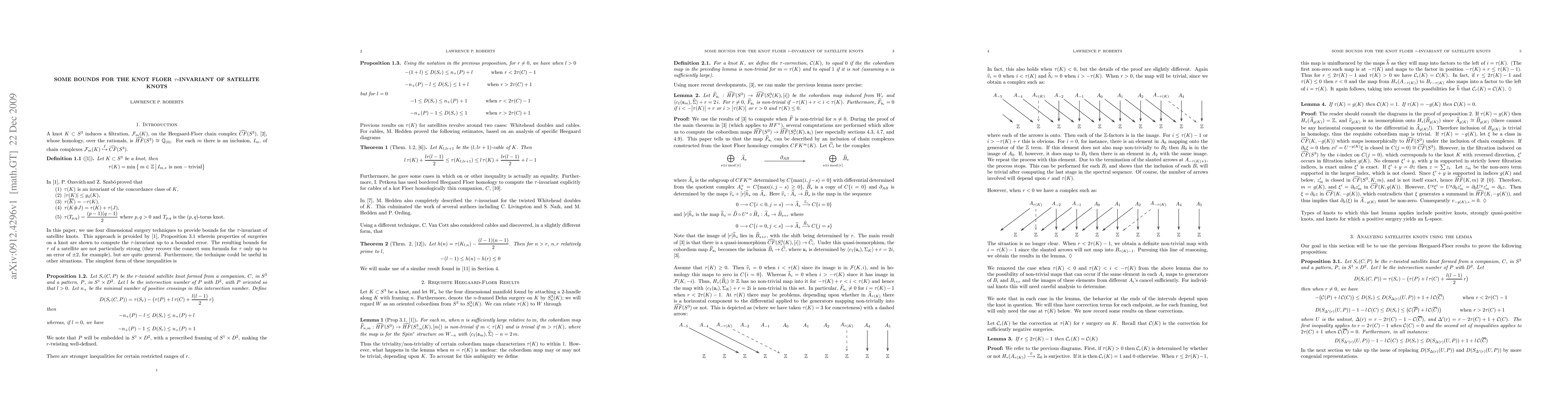 We use four dimensional techniques to derive general bounds on the $\tau$ invariant of a satellite knot in $S^{3}$.