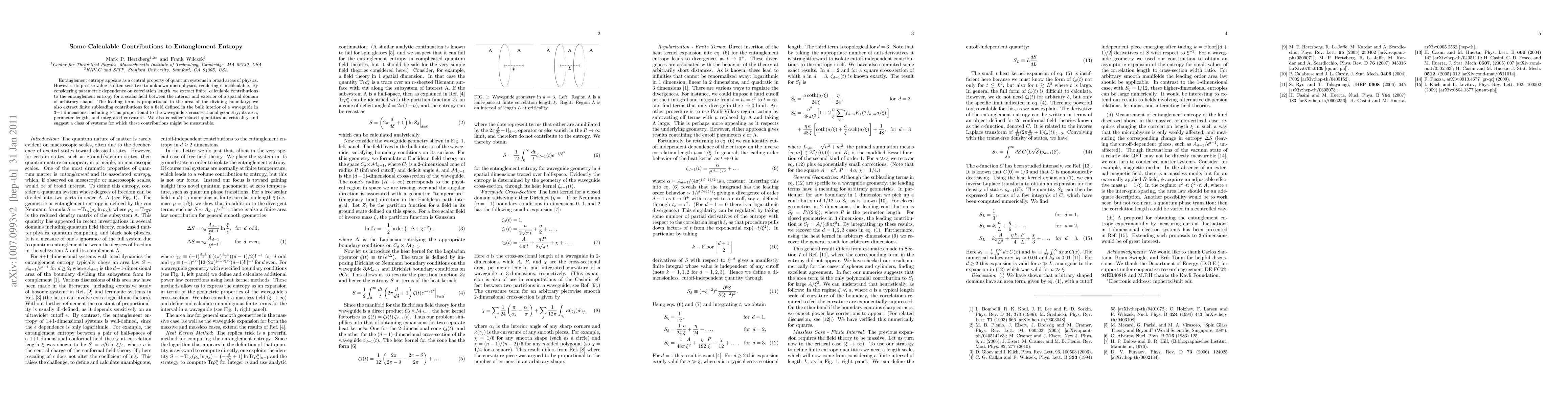 This paper calculates finite, measurable contributions to entanglement entropy for scalar fields, showing that the leading term is proportional to the area of the dividing boundary, while subleading terms depend on the geometry of the waveguide's cross-section, including its area, perimeter, and curvature. The findings suggest potential systems where these contributions might be experimentally observed.