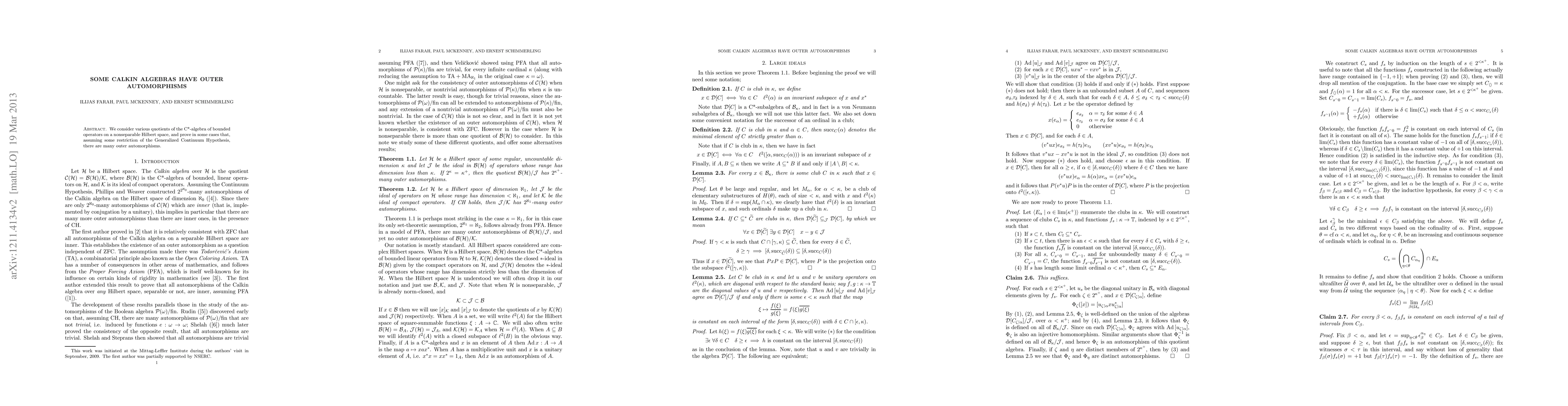 We consider various quotients of the C*-algebra of bounded operators on a nonseparable Hilbert space, and prove in some cases that, consistently, there are many outer automorphisms.