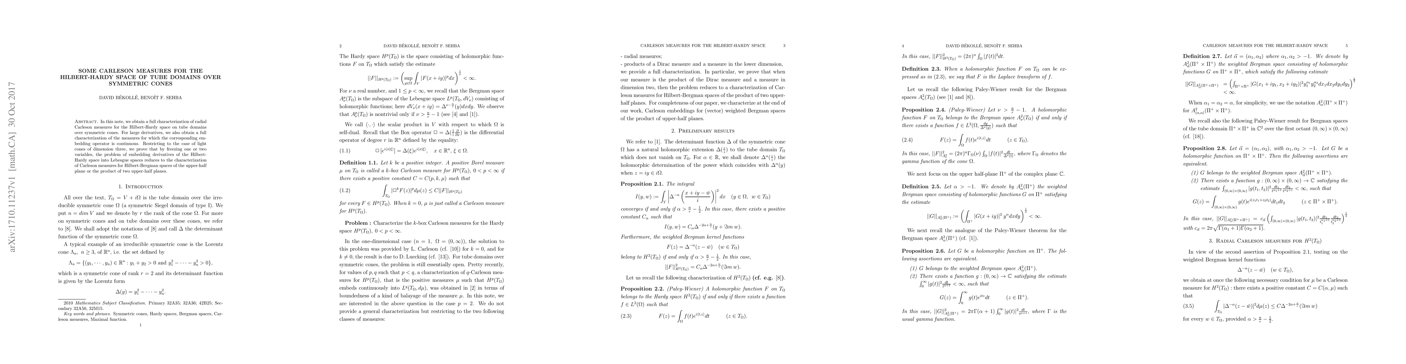 This paper fully characterizes radial Carleson measures for the Hilbert-Hardy space on tube domains over symmetric cones, and also determines conditions for continuity of embedding operators for large derivatives. For three-dimensional light cones, it simplifies the embedding problem into Lebesgue spaces by reducing it to the characterization of Carleson measures for Hilbert-Bergman spaces of the upper-half plane.