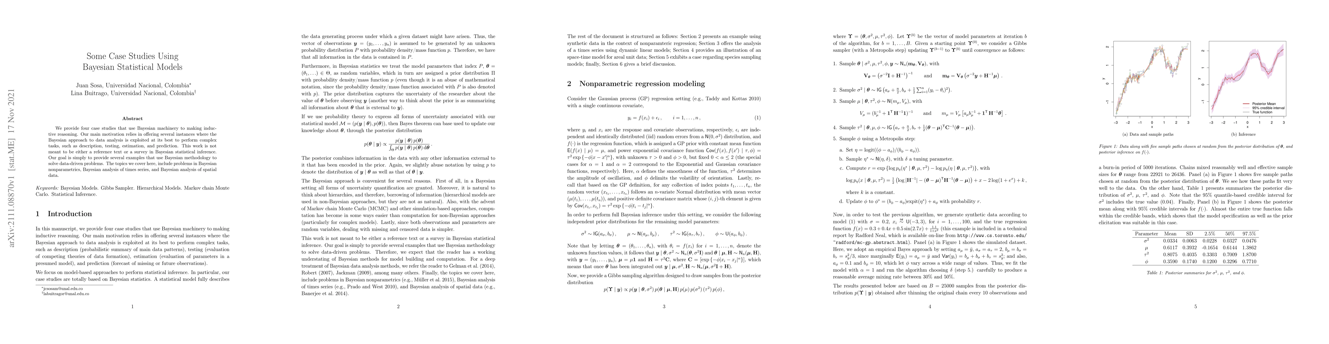 This paper presents four case studies using Bayesian statistical models to solve complex data-driven problems in fields like time series analysis and spatial data. It aims to provide practical examples of how Bayesian methodology can be applied to real-world problems without being a comprehensive reference or survey.