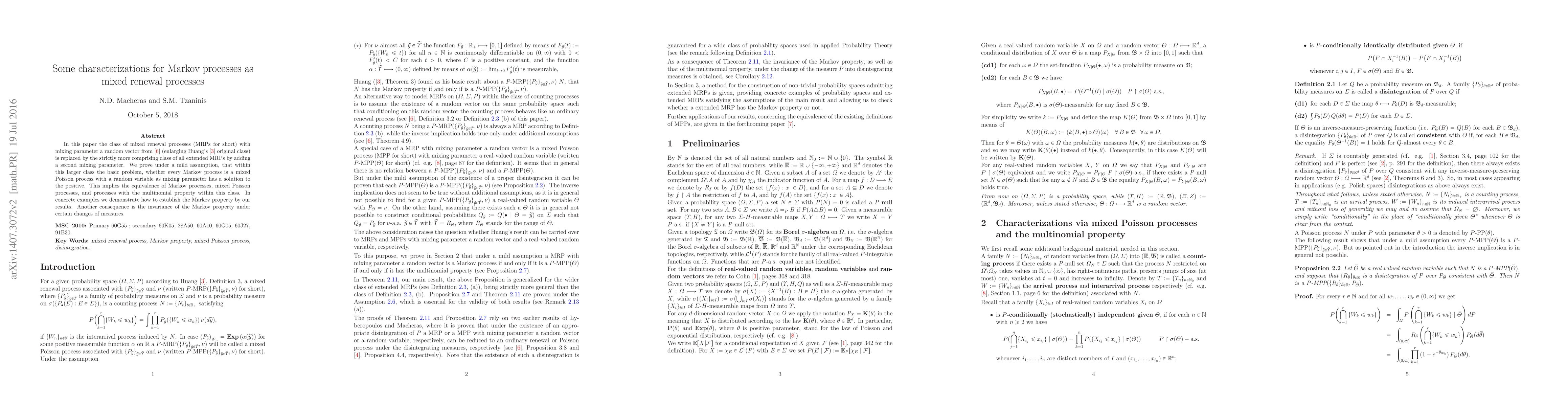This paper extends the class of mixed renewal processes by introducing a second mixing parameter, proving that every Markov process can be represented as a mixed Poisson process with a random variable as mixing parameter. It demonstrates the equivalence of Markov processes, mixed Poisson processes, and processes with the multinomial property within this extended class.