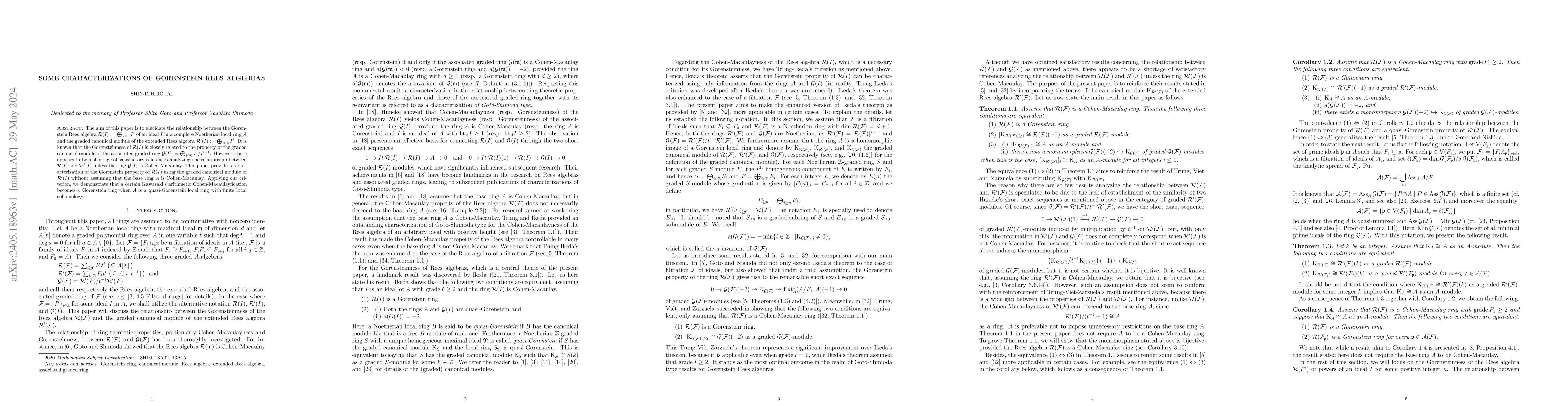 This paper characterizes the Gorenstein property of Gorenstein Rees algebras $\R(I)$ using the graded canonical module of extended Rees algebras $\R'(I)$, without requiring the base ring to be Cohen-Macaulay. It demonstrates that certain arithmetic Cohen-Macaulayfications become Gorenstein under specific conditions.