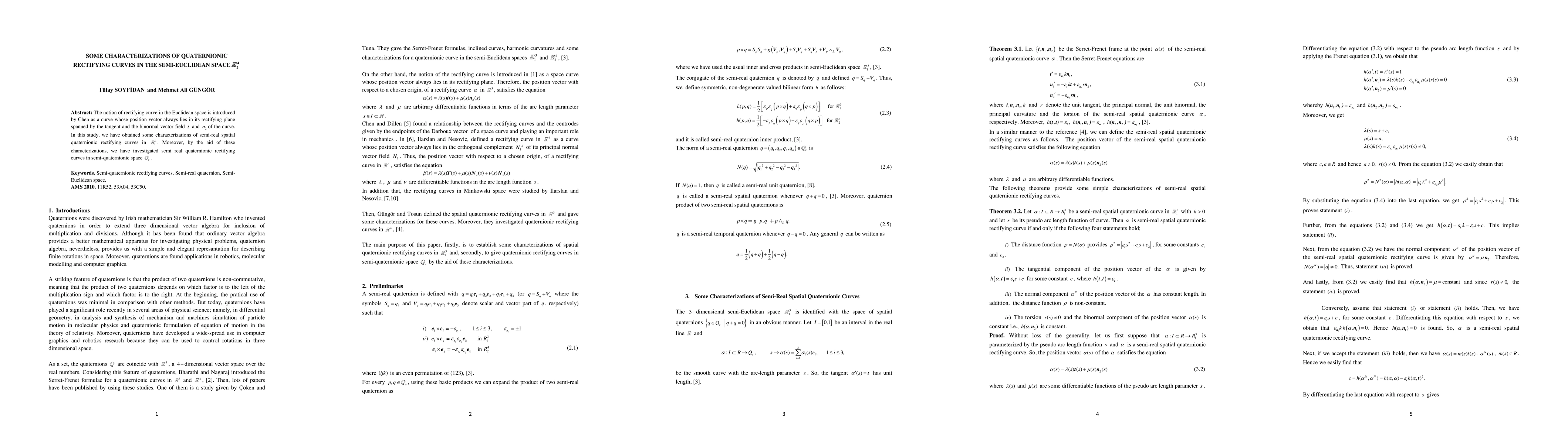This paper introduces characterizations of quaternionic rectifying curves in semi-Euclidean space, extending the concept of rectifying curves from Euclidean to semi-Euclidean contexts, and explores their properties in both R_1^3 and Q_v.