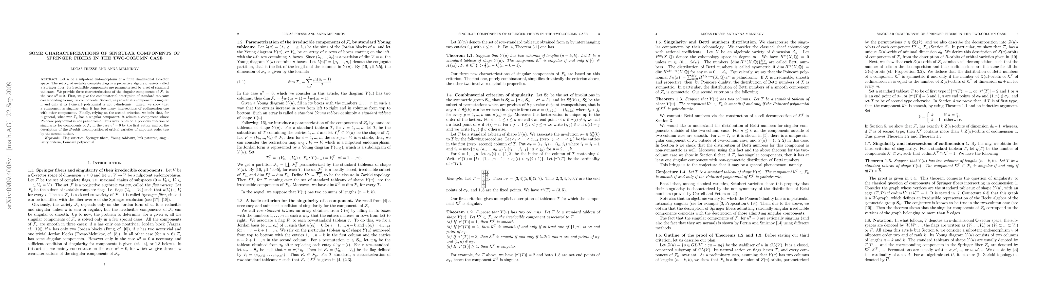 This paper characterizes the singular components of Springer fibers for nilpotent endomorphisms where $u^2=0$, providing three distinct criteria: combinatorial descriptions, palindromic Poincaré polynomials, and excessive codimension-one intersections. It concludes that general Springer fibers with singular components will have at least one component with a non-palindromic Poincaré polynomial.