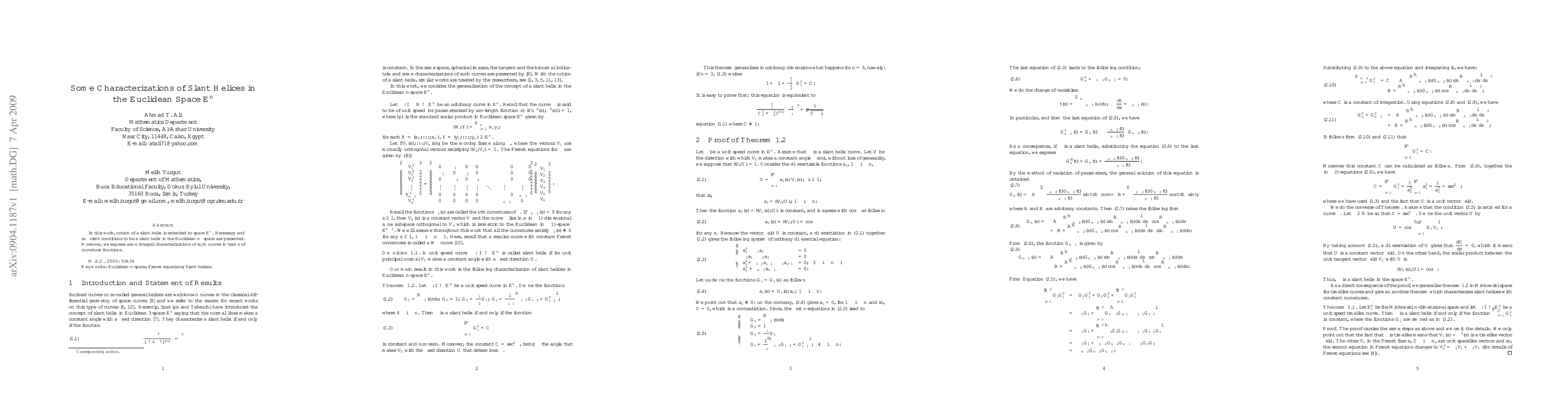 This paper extends the concept of slant helices to Euclidean n-space, presenting necessary and sufficient conditions for a curve to be classified as a slant helix. It also provides integral characterizations of these curves using curvature functions.