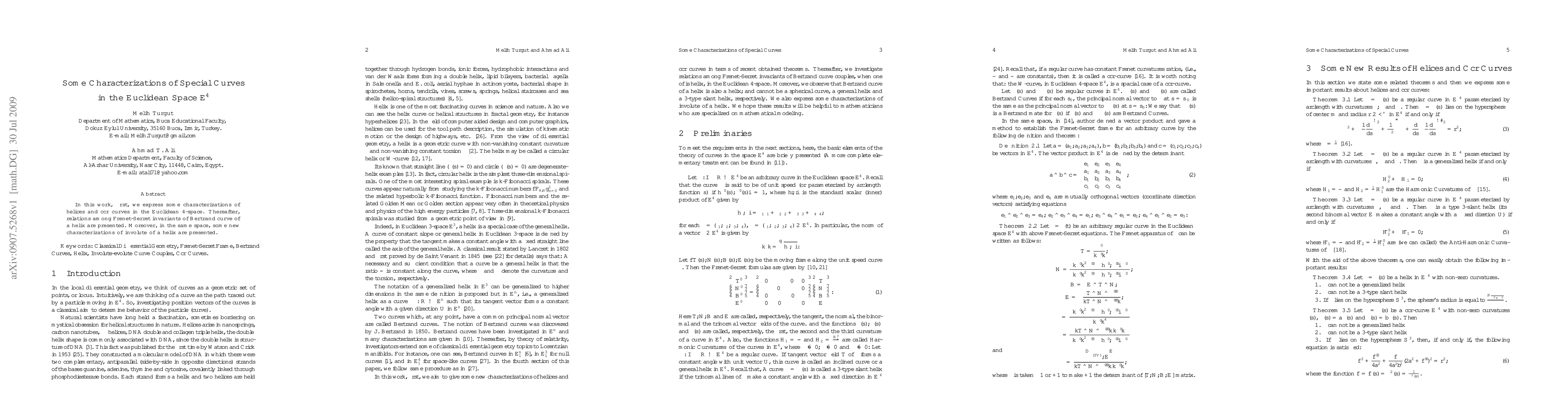 This paper characterizes special curves in 4-dimensional Euclidean space, specifically helices and ccr curves, and explores the relationships among their Frenet-Serret invariants. It also introduces new characterizations for the involute of a helix within the same space.