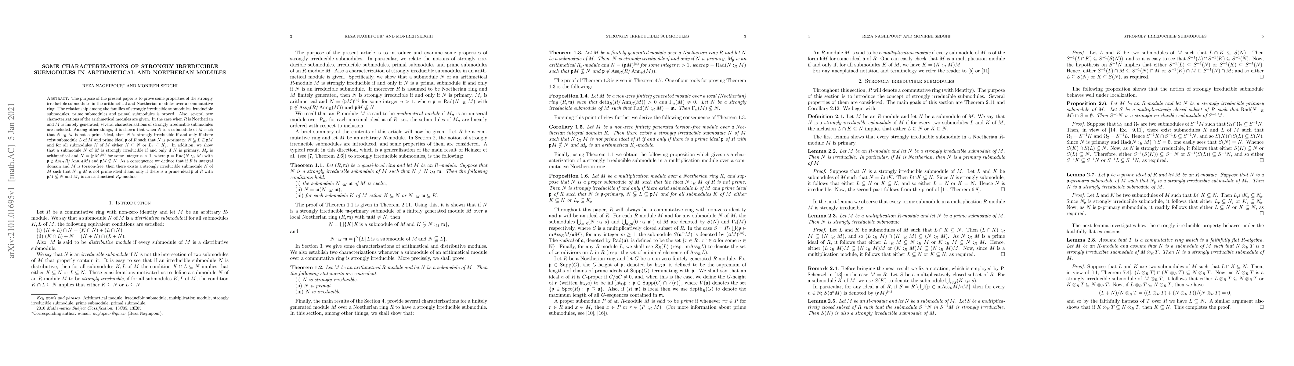 This paper explores properties of strongly irreducible submodules in arithmetical and Noetherian modules over a commutative ring, establishing relationships with irreducible, prime, and primal submodules. It provides new characterizations for arithmetical modules and proves conditions under which submodules are strongly irreducible, particularly when the ring is Noetherian and modules are finitely generated.