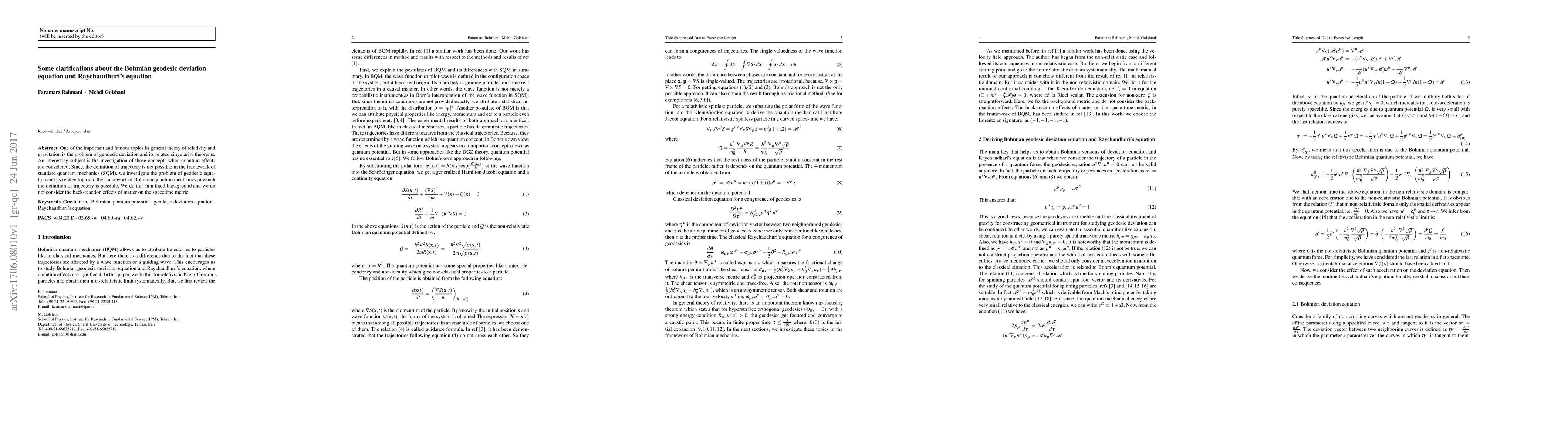This paper clarifies the Bohmian geodesic deviation equation and Raychaudhuri's equation within the framework of Bohmian quantum mechanics, focusing on the problem of geodesic deviation in a fixed background without considering back-reaction effects. It aims to explore these concepts when quantum effects are introduced, where trajectories are defined.