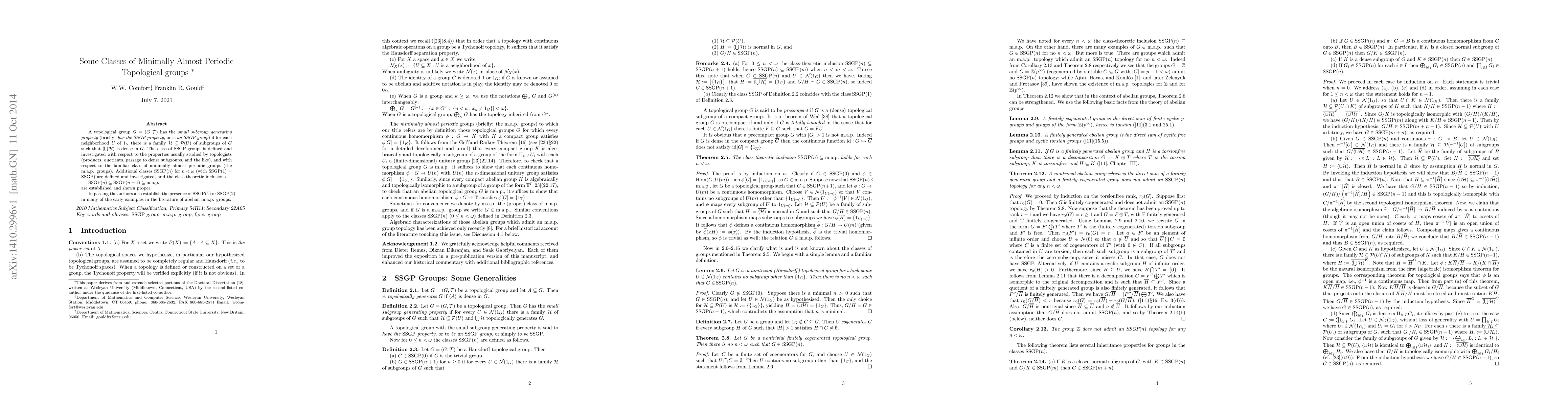Classes SSGP(n)(n < \omega) of topological groups are defined, and the class-theoretic inclusions SSGP(n) \subseteq SSGP(n+1) \subseteq m.a.p. are established and shown proper. These classes are investigated with respect to the properties normally studied by topologists (products, quotients, passage to dense subgroups, and the like). In passing the authors establish the presence of the SSGP(1) or SSGP(2) property in many of the early examples in the literature of abelian m.a.p. groups.