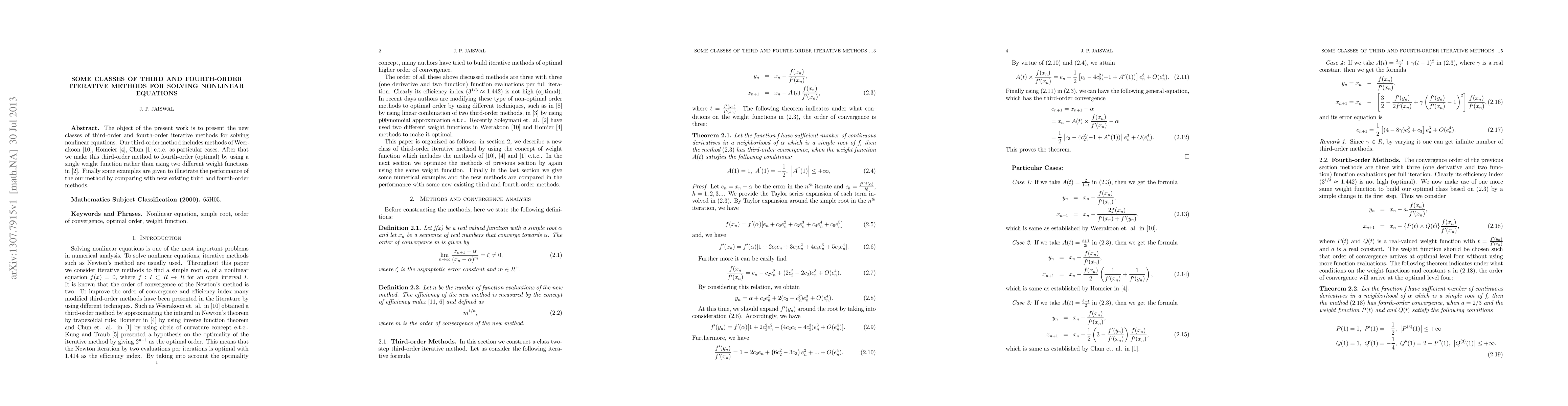 This paper introduces new classes of third-order and fourth-order iterative methods for solving nonlinear equations, optimizing the fourth-order method using a single weight function. Comparative examples demonstrate the effectiveness of the proposed methods against existing third and fourth-order techniques.