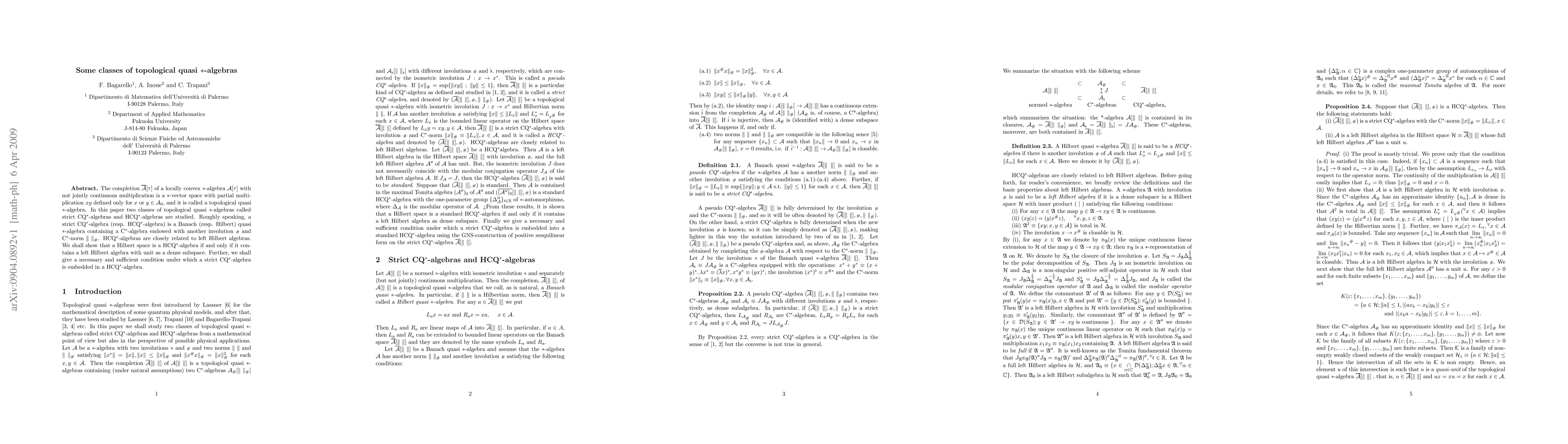 The completion $\overline{A}[\tau]$ of a locally convex *-algebra $A [ \tau ]$ with not jointly continuous multiplication is a *-vector space with partial multiplication $xy$ defined only for $x$ or $y \in A_{0}$, and it is called a topological quasi *-algebra. In this paper two classes of topological quasi *-algebras called strict CQ$^*$-algebras and HCQ$^*$-algebras are studied. Roughly speaking, a strict CQ$^*$-algebra (resp. HCQ$^*$-algebra) is a Banach (resp. Hilbert) quasi *-algebra containing a C$^*$-algebra endowed with another involution $\sharp$ and C$^*$-norm $\| \|_{\sharp}$. HCQ$^*$-algebras are closely related to left Hilbert algebras. We shall show that a Hilbert space is a HCQ$^*$-algebra if and only if it contains a left Hilbert algebra with unit as a dense subspace. Further, we shall give a necessary and sufficient condition under which a strict CQ$^*$-algebra is embedded in a HCQ$^*$-algebra.