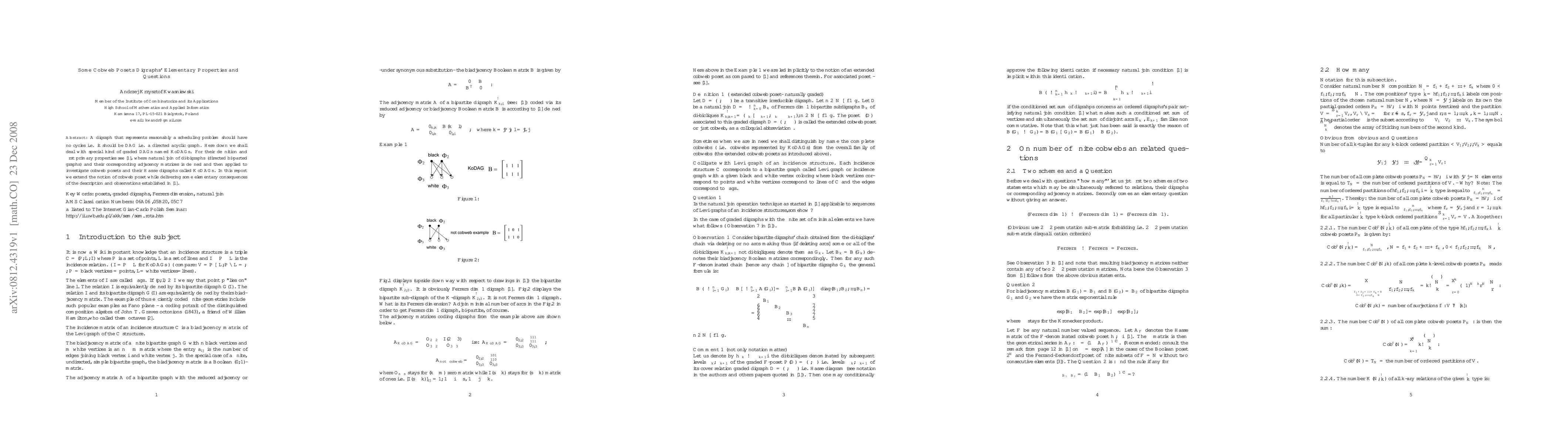A digraph that represents reasonably a scheduling problem should be a directed acyclic graph. Here down we shall deal with special kind of graded $DAGs$ named $KoDAGs$. For their definition and first primary properties see $ [1]$, where natural join of directed biparted graphs and their corresponding adjacency matrices is defined and then applied to investigate cobweb posets and their $Hasse$ digraphs called $KoDAGs$. In this report we extend the notion of cobweb poset while delivering some elementary consequences of the description and observations established in $[1]$.