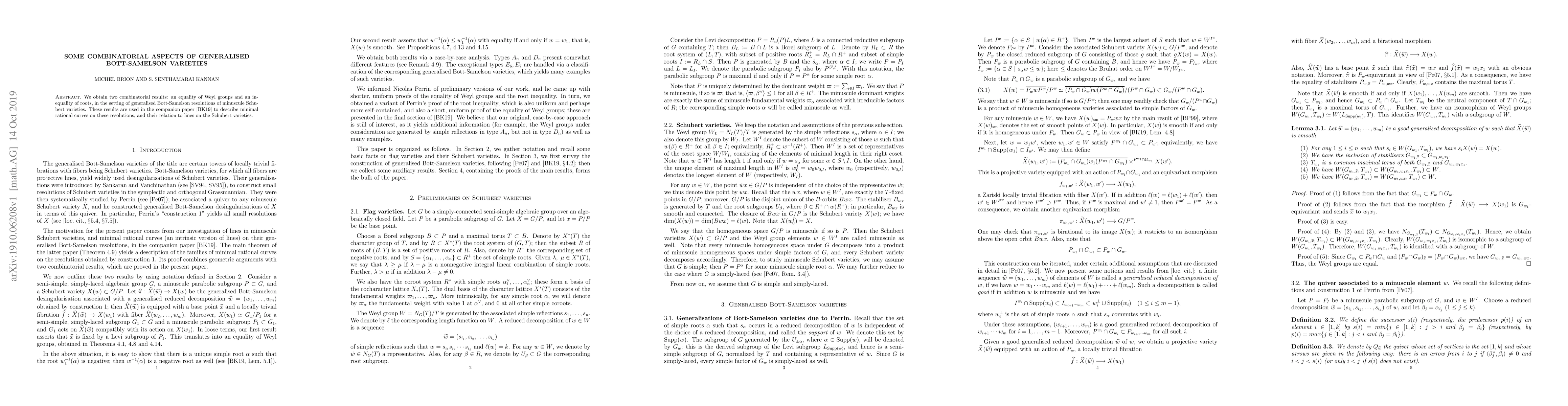 We obtain two combinatorial results: an equality of Weyl groups and an inequality of roots, in the setting of generalised Bott-Samelson resolutions of minuscule Schubert varieties. These results are used in the companion paper [BK19] to describe minimal rational curves on these resolutions, and their relation to lines on the Schubert varieties.
