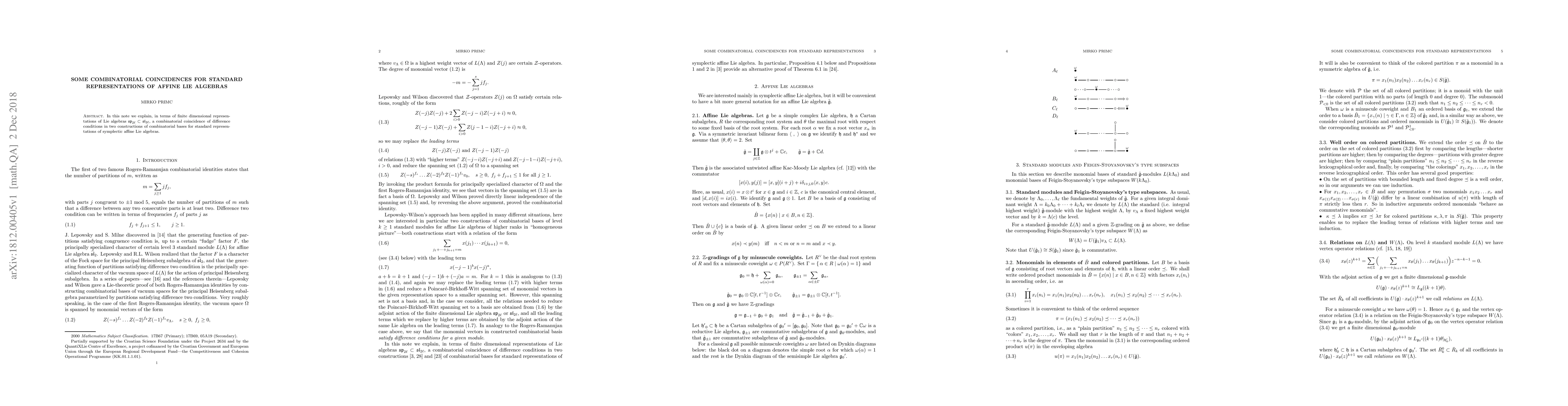 This paper explores combinatorial coincidences in the difference conditions of two constructions for combinatorial bases in standard representations of symplectic affine Lie algebras, using finite dimensional representations of $\mathfrak{sp}_{2\ell}\subset\mathfrak{sl}_{2\ell}$. The findings reveal intriguing connections between these constructions.
