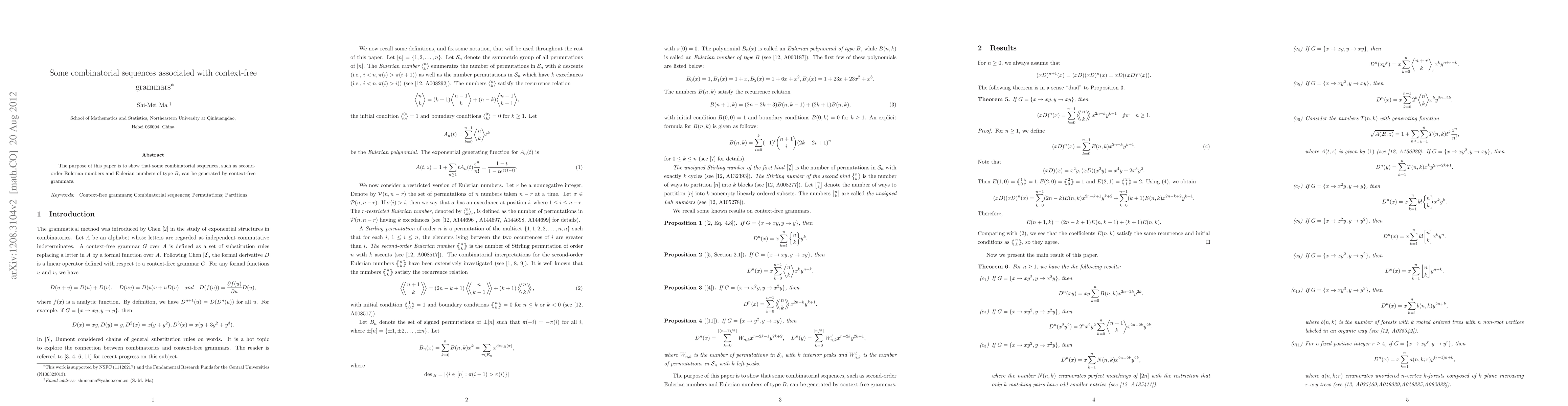This paper demonstrates that combinatorial sequences like second-order Eulerian numbers and Eulerian numbers of type $B$ can be generated using context-free grammars, linking combinatorial structures with formal language theory.