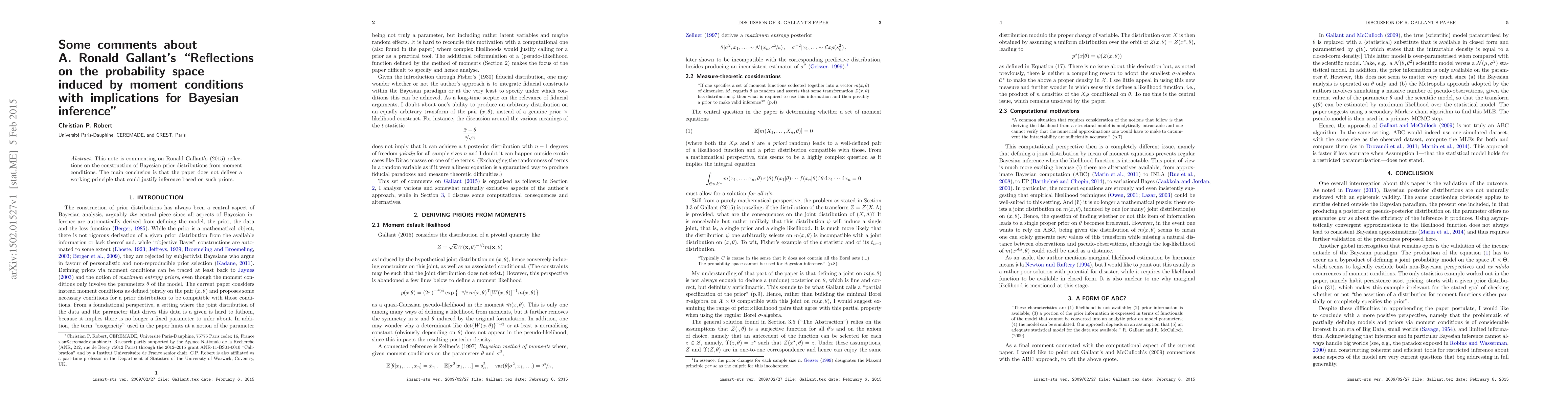 This note is commenting on Ronald Gallant's (2015) reflections on the construction of Bayesian prior distributions from moment conditions. The main conclusion is that the paper does not deliver a working principle that could justify inference based on such priors.