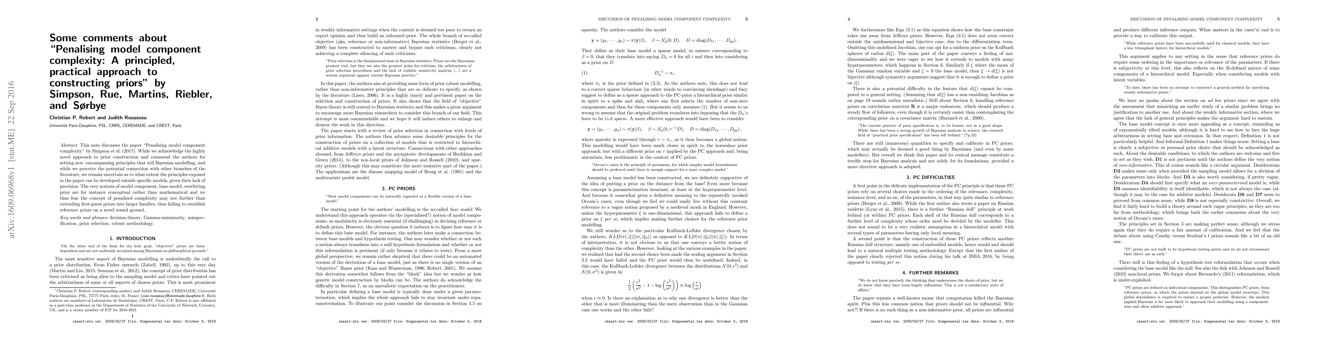 This note discusses the paper "Penalising model component complexity" by Simpson et al. (2017). While we acknowledge the highly novel approach to prior construction and commend the authors for setting new-encompassing principles that will Bayesian modelling, and while we perceive the potential connection with other branches of the literature, we remain uncertain as to what extent the principles exposed in the paper can be developed outside specific models, given their lack of precision. The very notions of model component, base model, overfitting prior are for instance conceptual rather than mathematical and we thus fear the concept of penalised complexity may not further than extending first-guess priors into larger families, thus failing to establish reference priors on a novel sound ground.