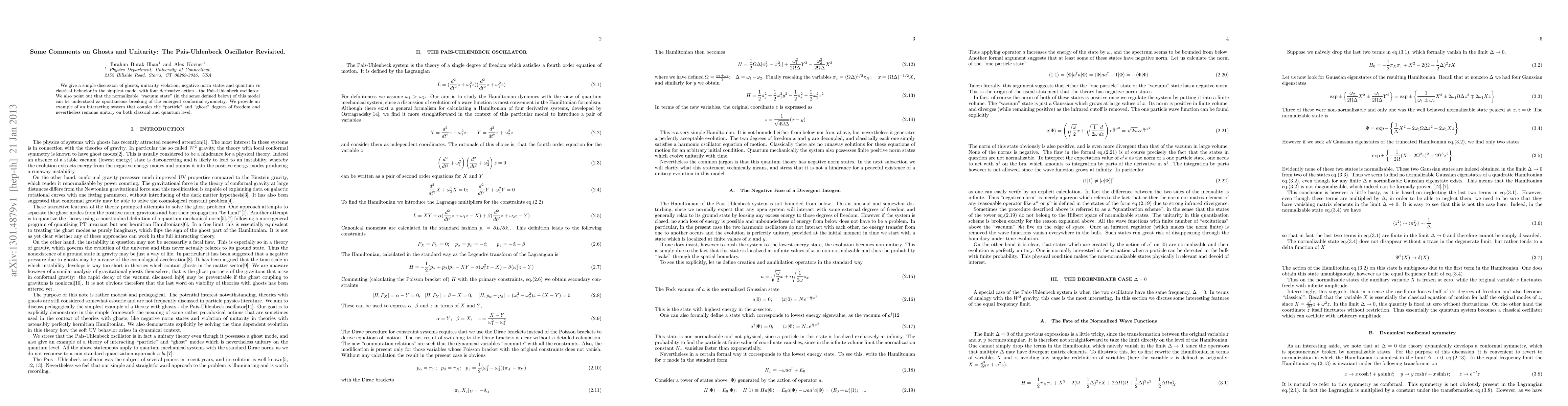 We give a simple discussion of ghosts, unitarity violation, negative norm states and quantum vs classical behavior in the simplest model with four derivative action - the Pais-Uhlenbeck oscillator. We also point out that the normalizable "vacuum state" (in the sense defined below) of this model can be understood as spontaneous breaking of the emergent conformal symmetry. We provide an example of an interacting system that couples the "particle" and "ghost" degrees of freedom and nevertheless remains unitary on both classical and quantum level.