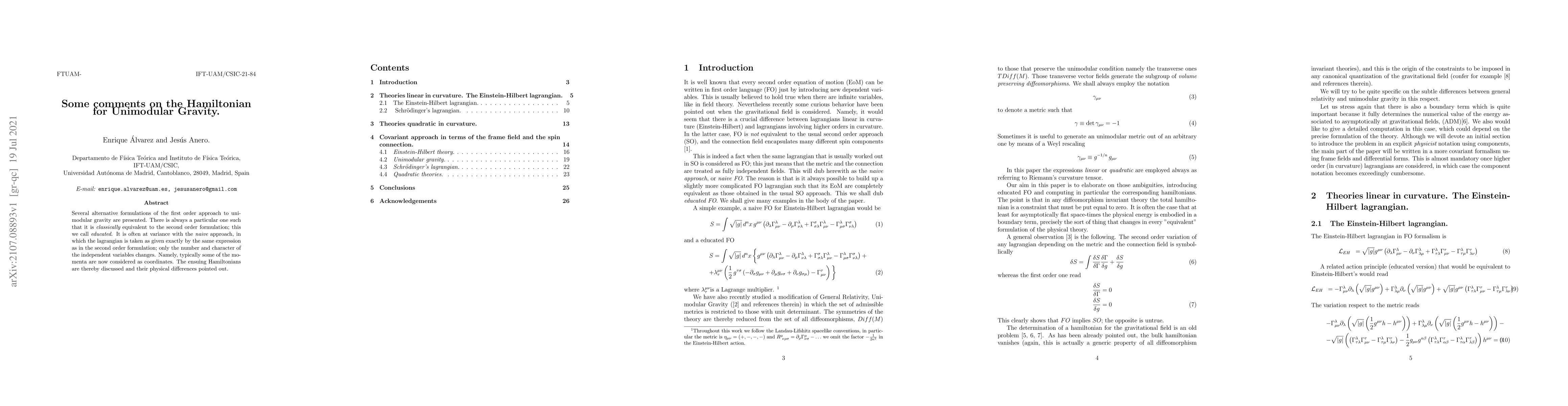 Several alternative formulations of the first order approach to unimodular gravity are presented. There is always a particular one such that it is {\em classically} equivalent to the second order formulation; this we call {\em educated}. It is often at variance with the {\em naive} approach, in which the lagrangian is taken as given exactly by the same expression as in the second order formulation; only the number and character of the independent variables changes. Namely, typically some of the momenta are now considered as coordinates. The ensuing Hamiltonians are thereby discussed and their physical differences pointed out.