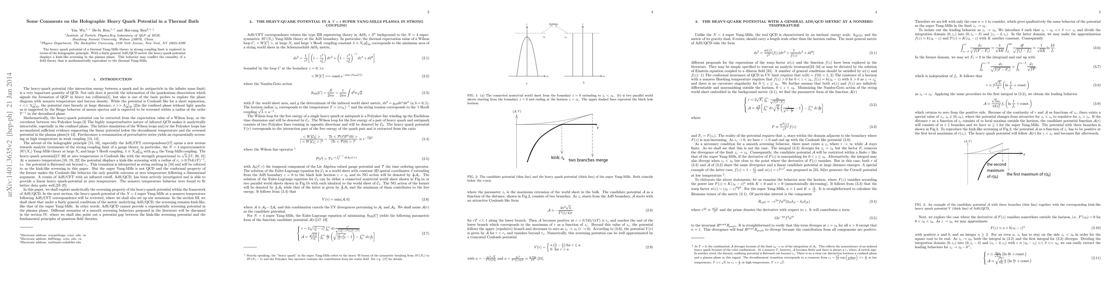 The heavy quark potential of a thermal Yang-Mills theory in strong coupling limit is explored in terms of the holographic principle. With a fairly general AdS/QCD metric the heavy quark potential displays a kink-like screening in the plasma phase. This behavior may conflict the causality of a field theory that is mathematically equivalent to the thermal Yang-Mills.