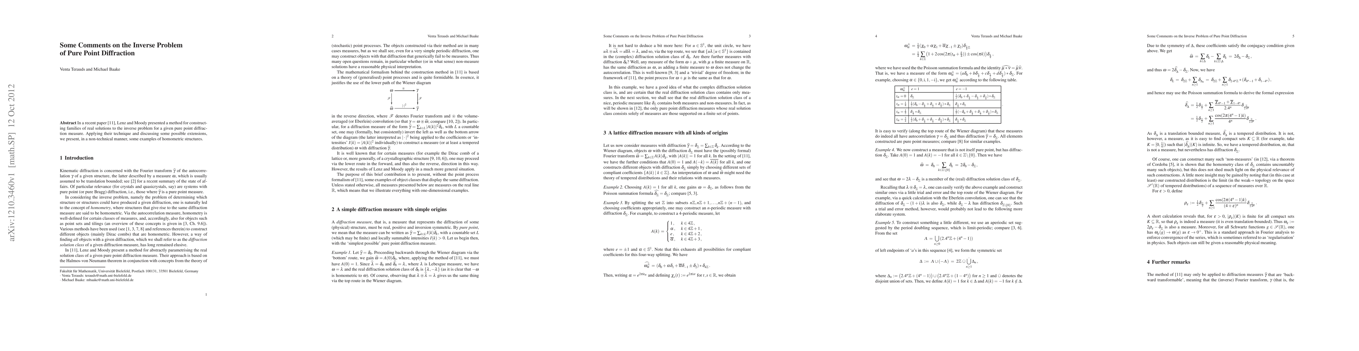 In a recent paper, Lenz and Moody (arXiv:1111.3617) presented a method for constructing families of real solutions to the inverse problem for a given pure point diffraction measure. Applying their technique and discussing some possible extensions, we present, in a non-technical manner, some examples of homometric structures.