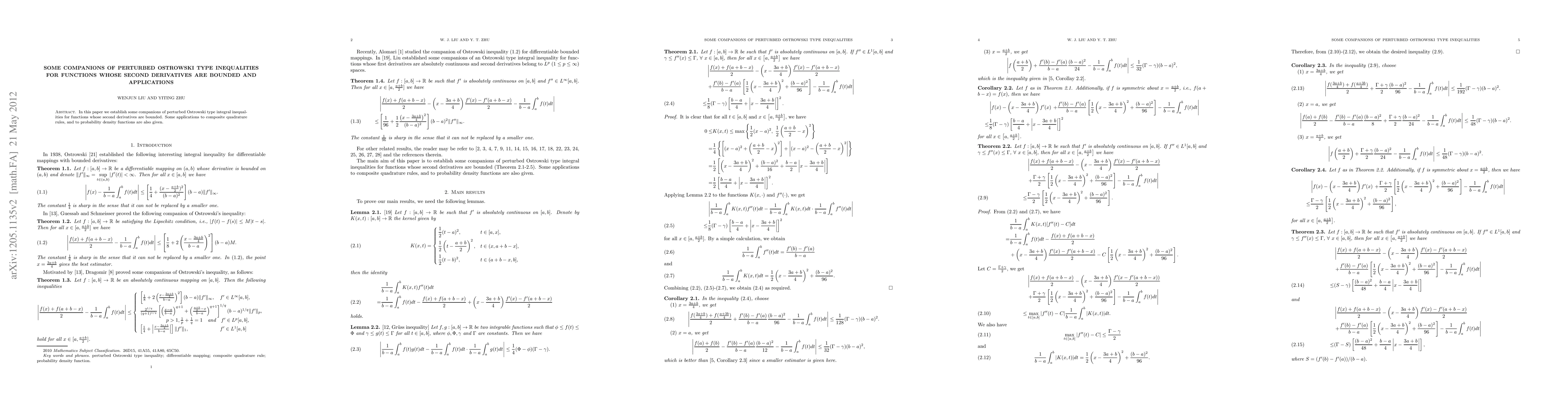 In this paper we establish some companions of perturbed Ostrowski type integral inequalities for functions whose second derivatives are bounded. Some applications to composite quadrature rules, and to probability density functions are also given.