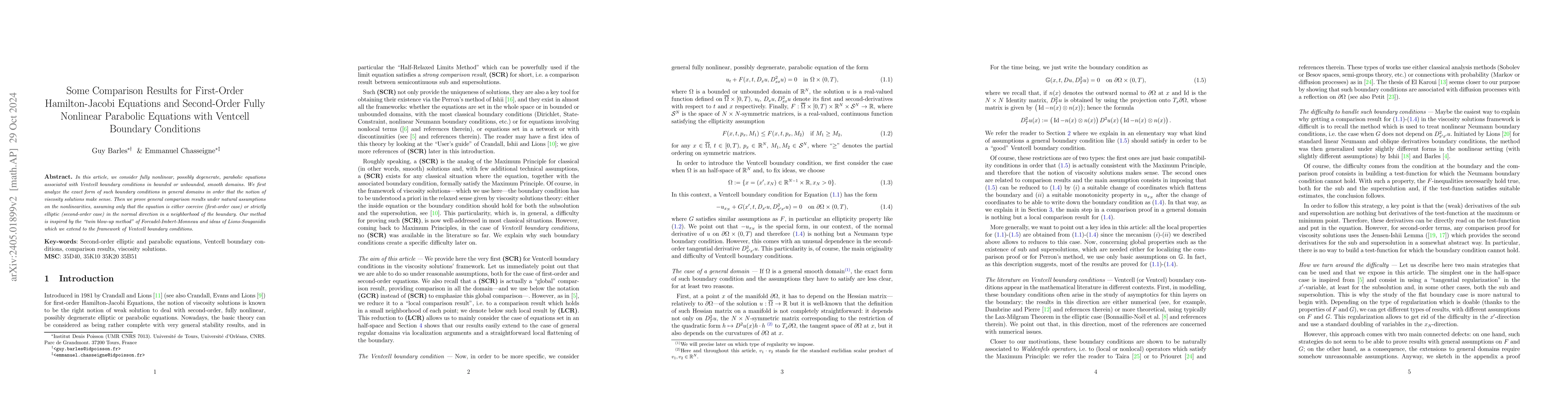Summary: This paper examines fully nonlinear parabolic equations with Ventcell boundary conditions, establishing comparison results by analyzing the exact nature of these conditions and employing a modified "twin blow-up method" inspired by Forcadel-Imbert-Monneau and Lions-Souganidis.