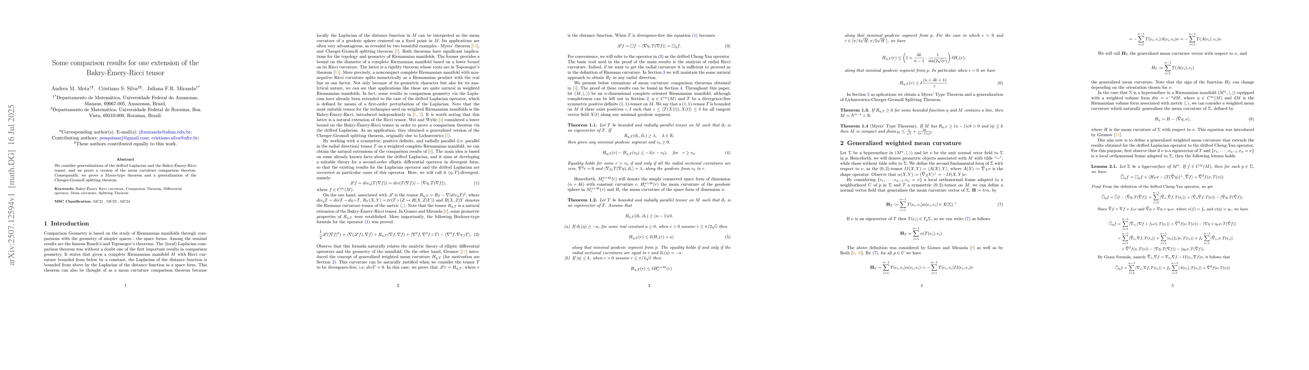 We consider generalizations of the drifted Laplacian and the Bakry-\'Emery-Ricci tensor, and we prove a version of the mean curvature comparison theorem. Consequently, we prove a Myers-type theorem and a generalization of the Cheeger-Gromoll splitting theorem.